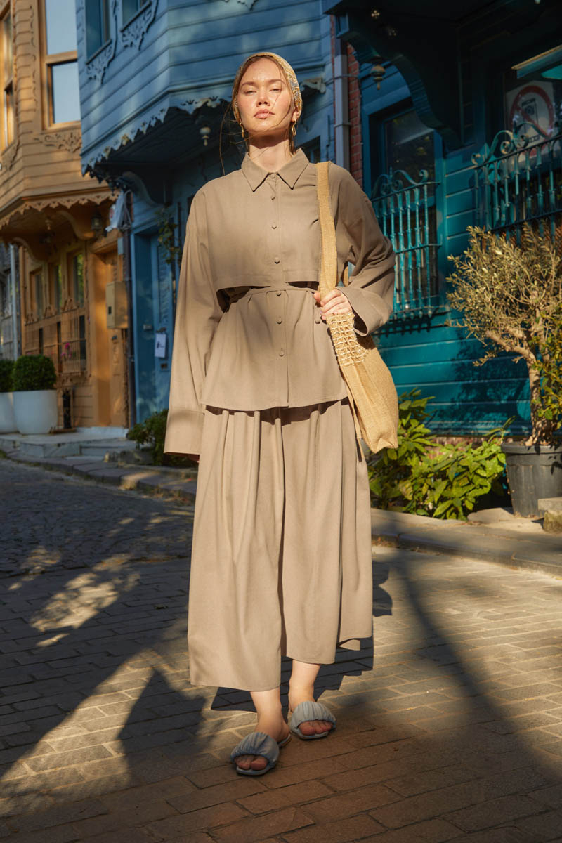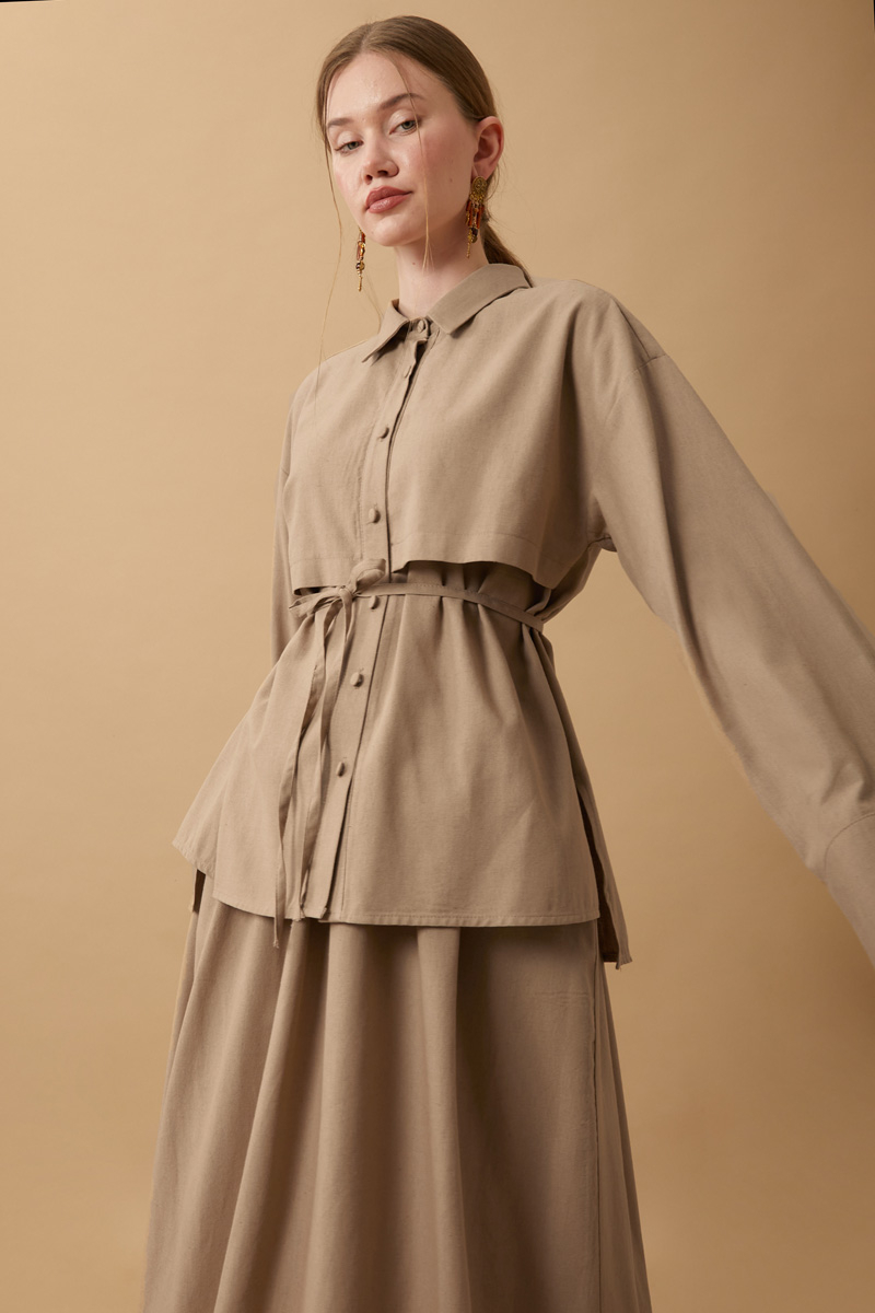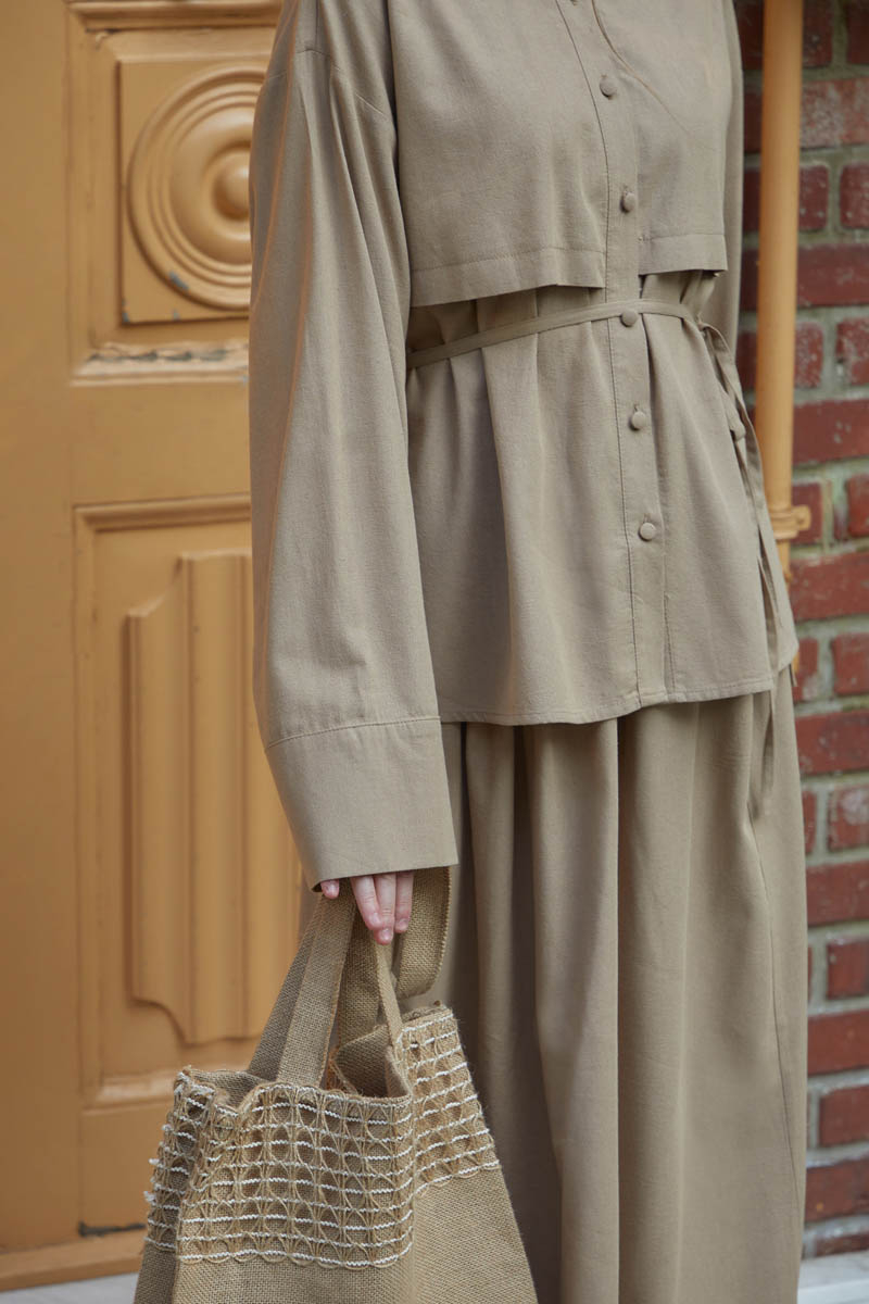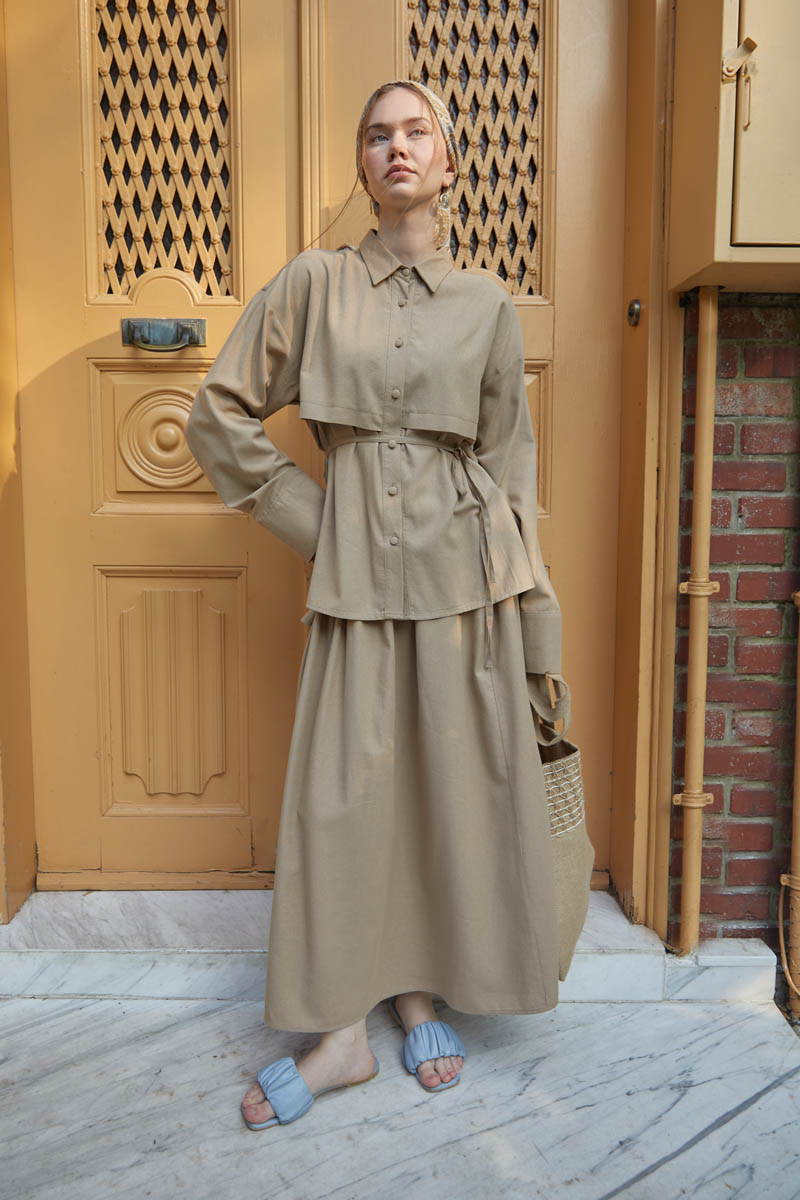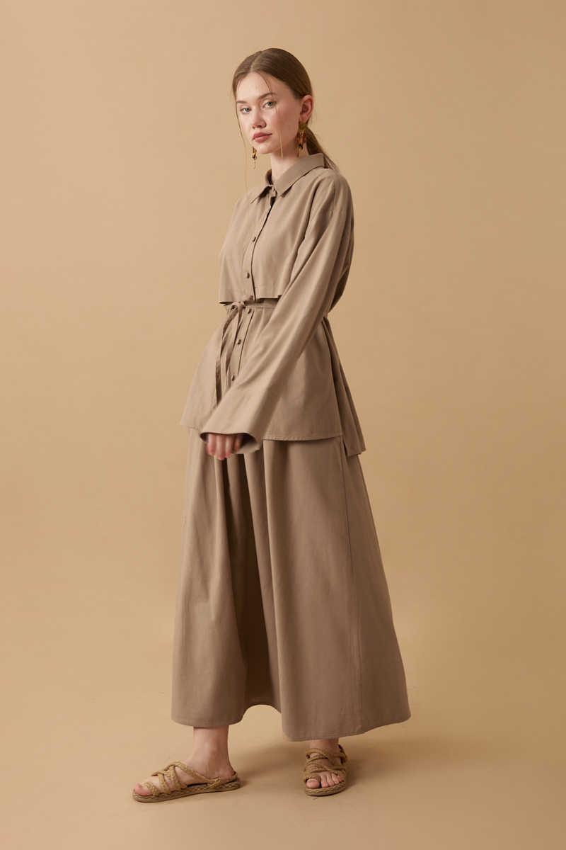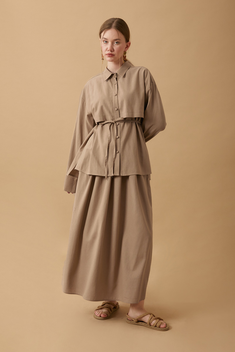 Rüzgarlıklı Keten Etek Takım Vizon,