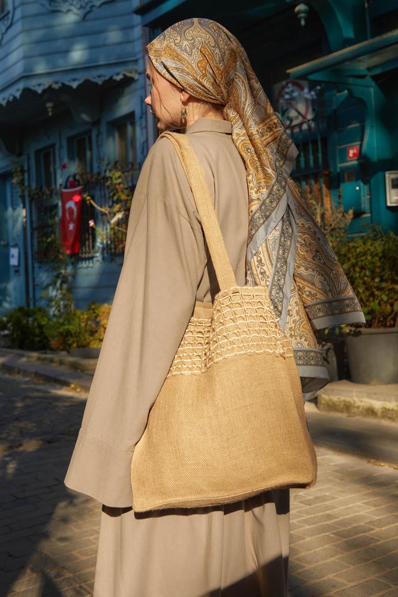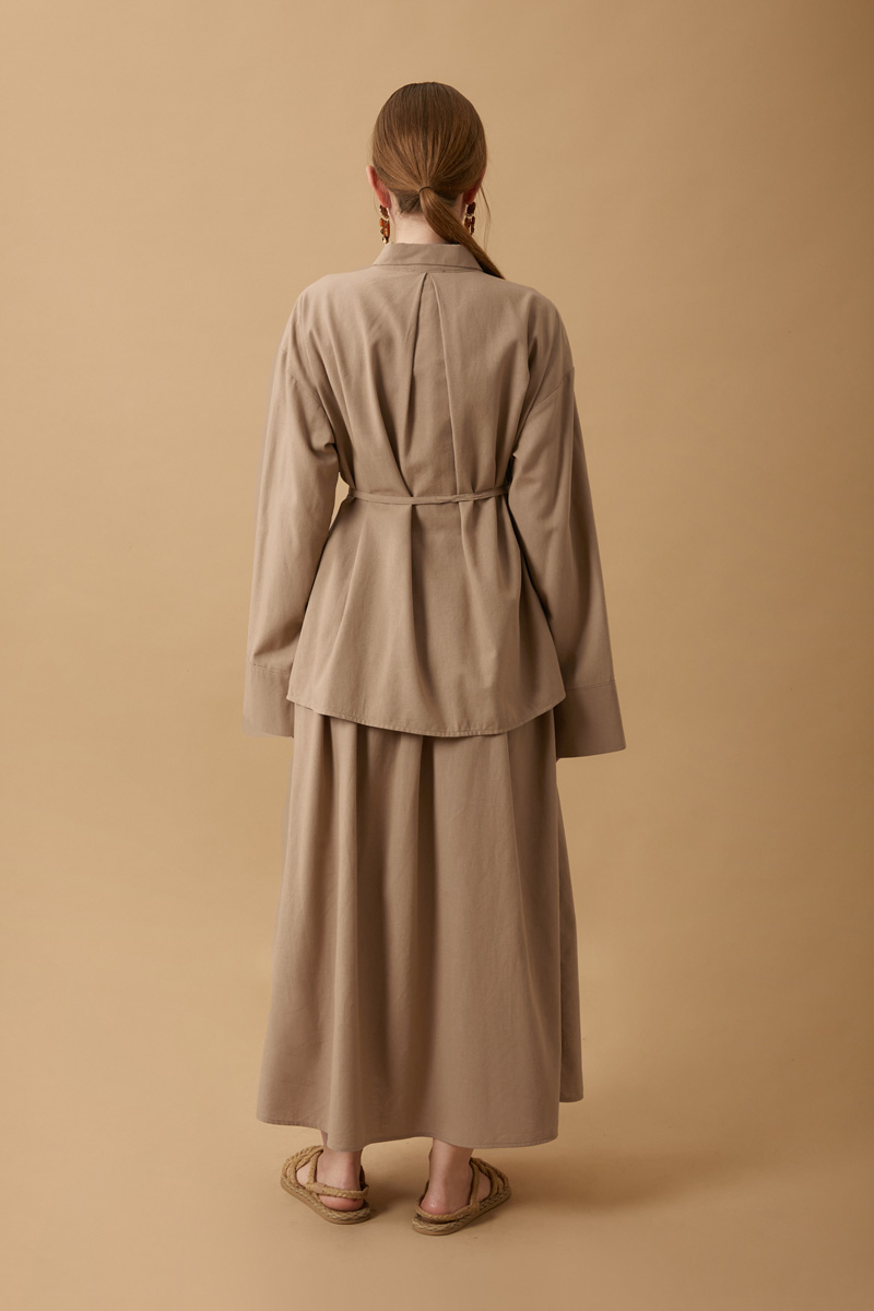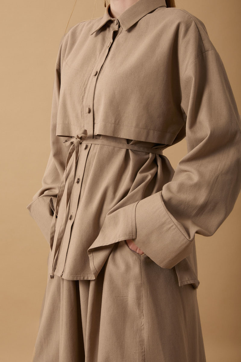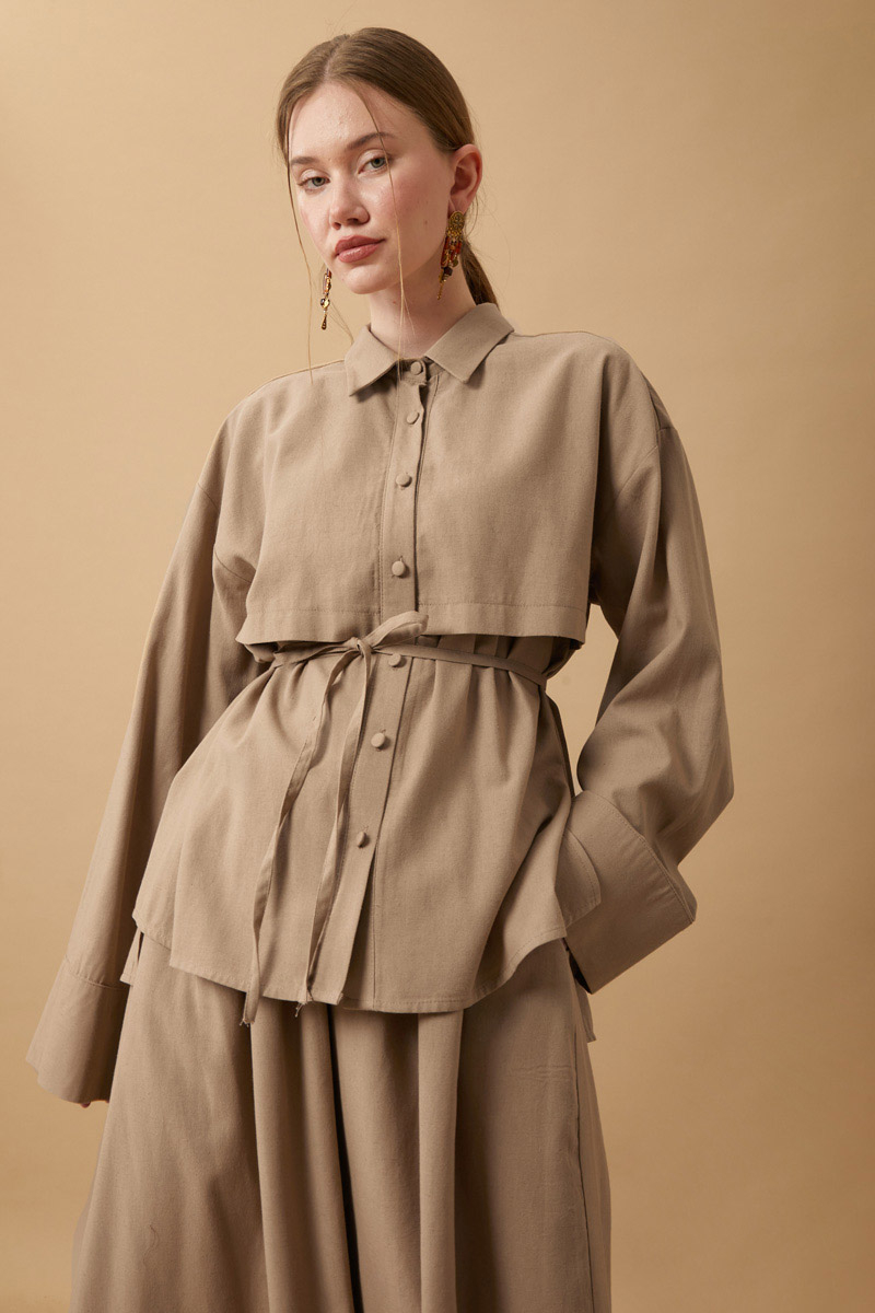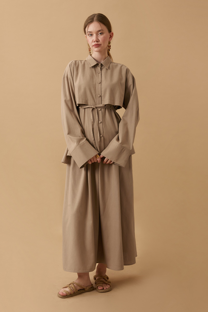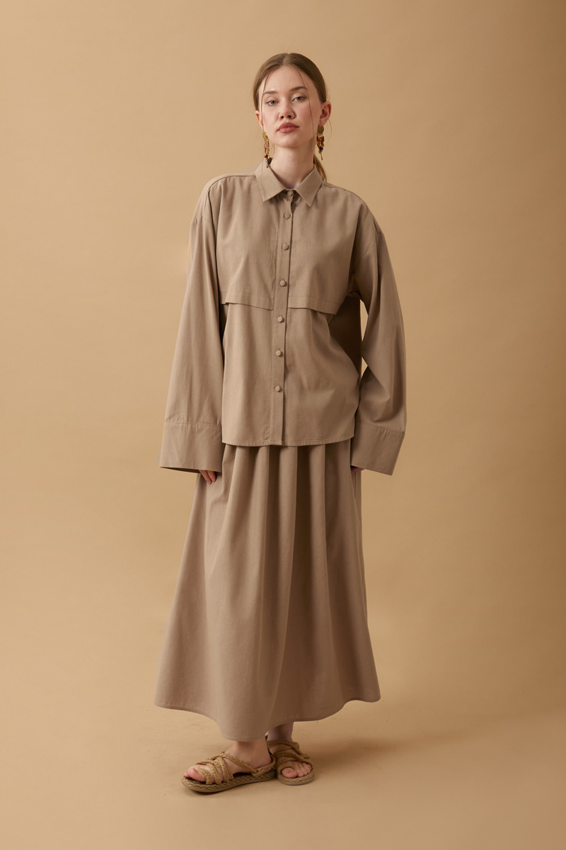 Rüzgarlıklı Keten Etek Takım Vizon,