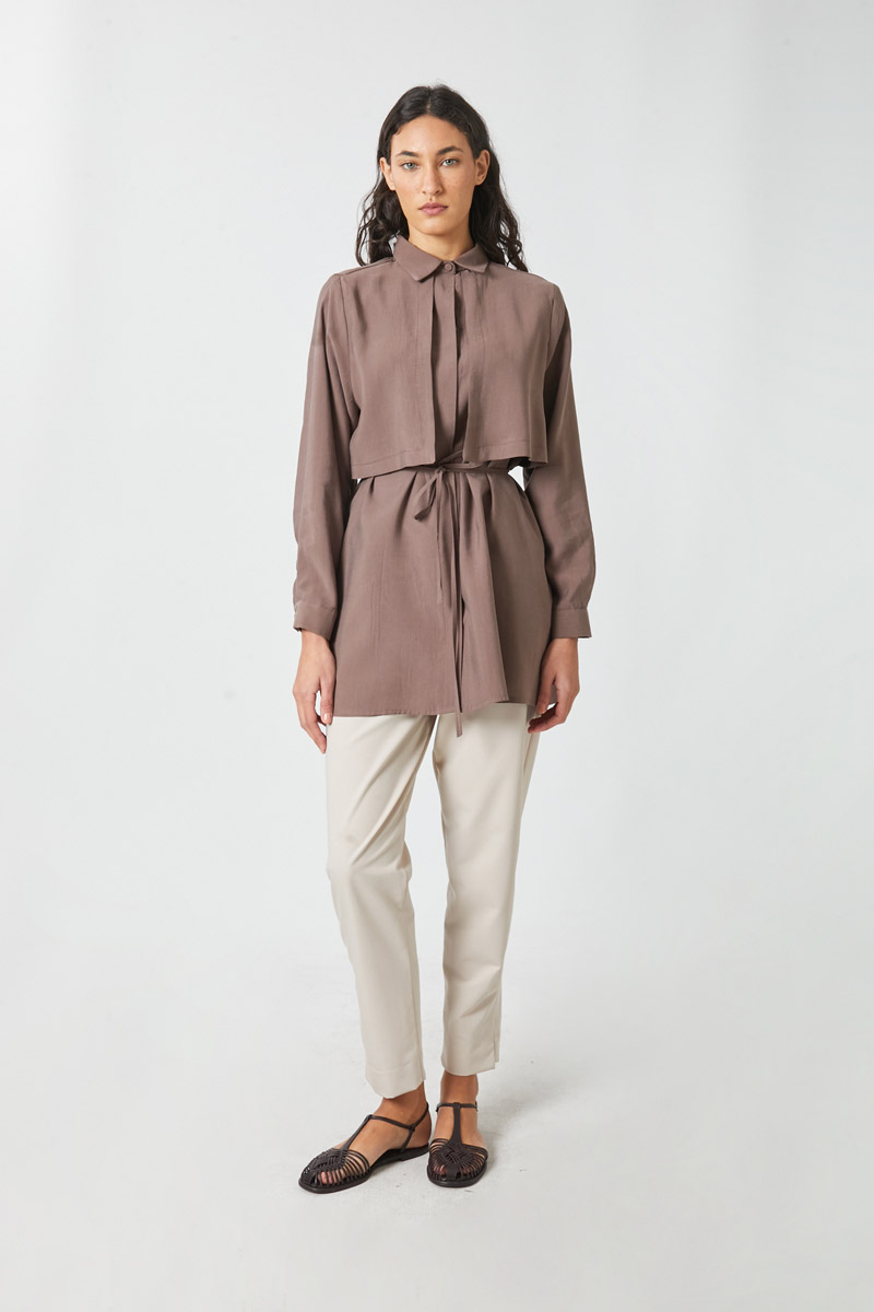 Rüzgarlıklı Tensel Gömlek Kahverengi