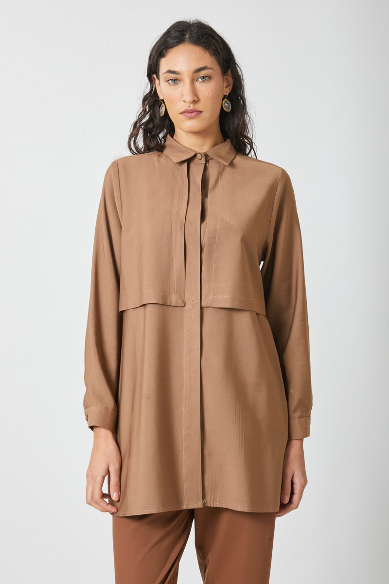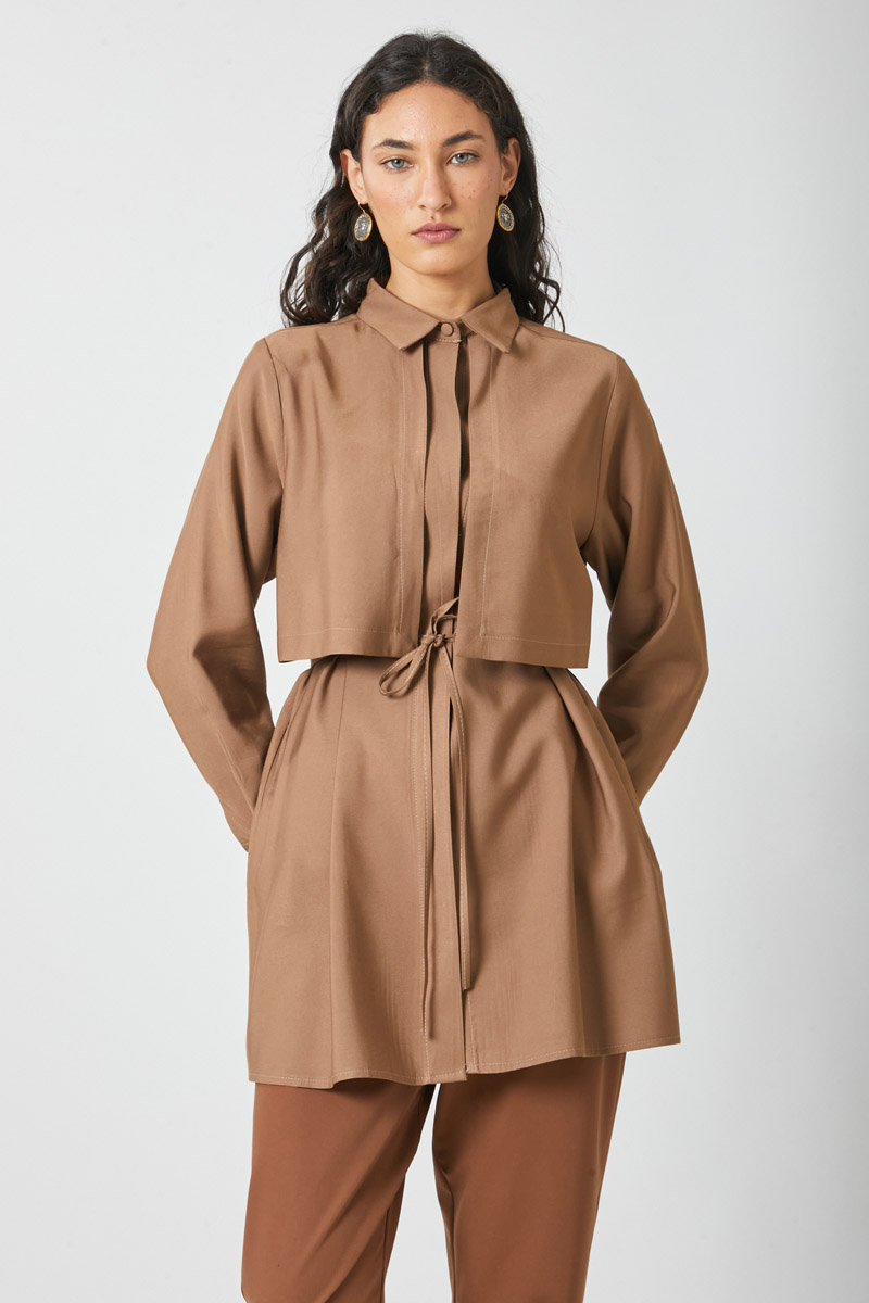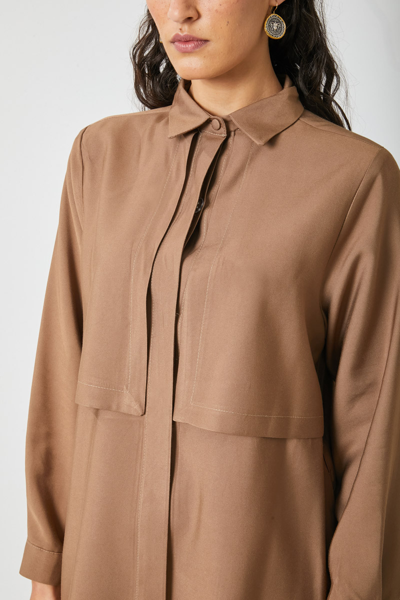 Rüzgarlıklı Tensel Gömlek Sütlü Kahve