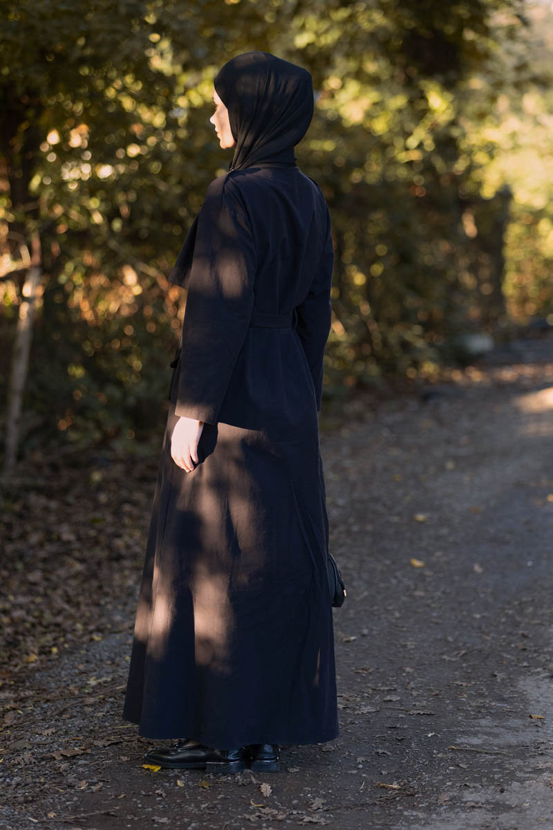 Rüzgarlıklı Trenç Elbise Siyah, zamansız trençkot siluetini elbise formuyla buluşturarak klasik ve modern çizgiyi bir arada sunar. Üst kısmındaki rüzgarlık detayı ve omuz apoletleri tasarıma dinamik bir hava katarken, bel kısmındaki kuşak detayı vücut formunu zarifçe vurgular. Uzun formu ve hafif dökümlü yapısı sayesinde mevsim geçişlerinde hem konforlu hem de şık bir kullanım sunar. Günlük şehir stilinden özel davet kombinlerine kadar geniş bir kullanım alanına sahiptir.