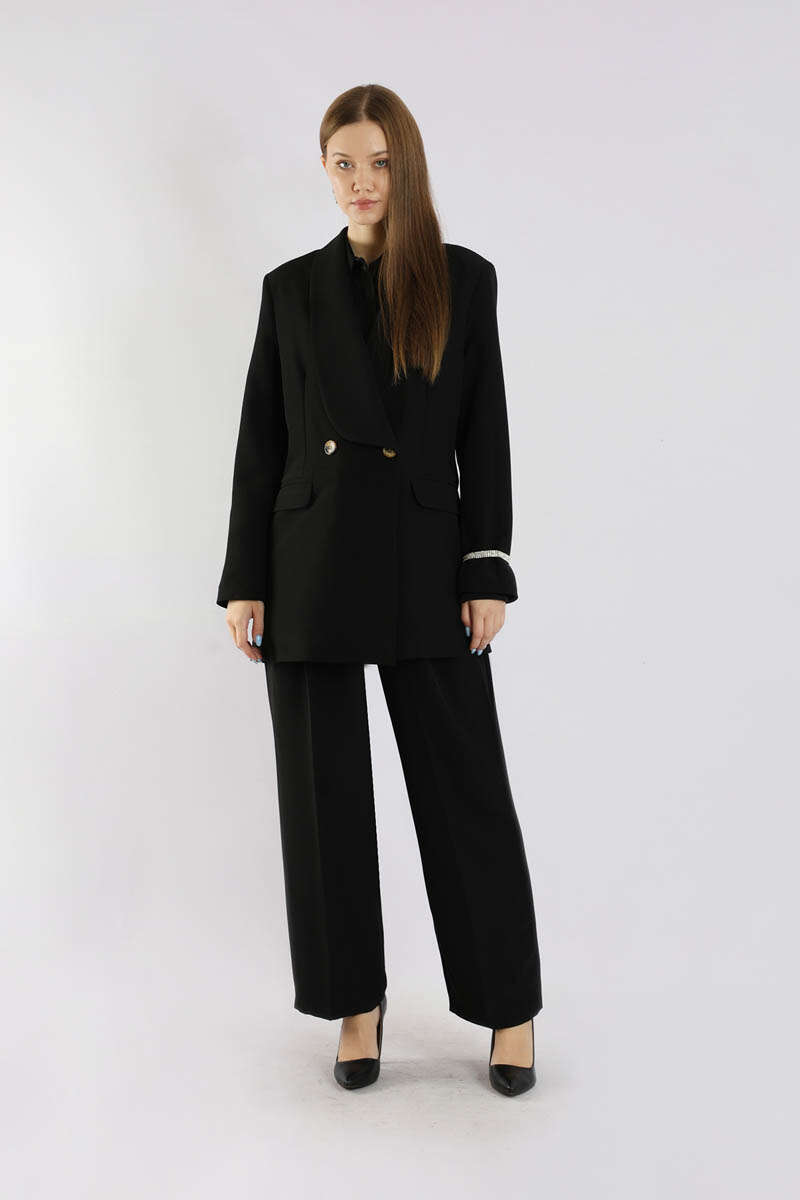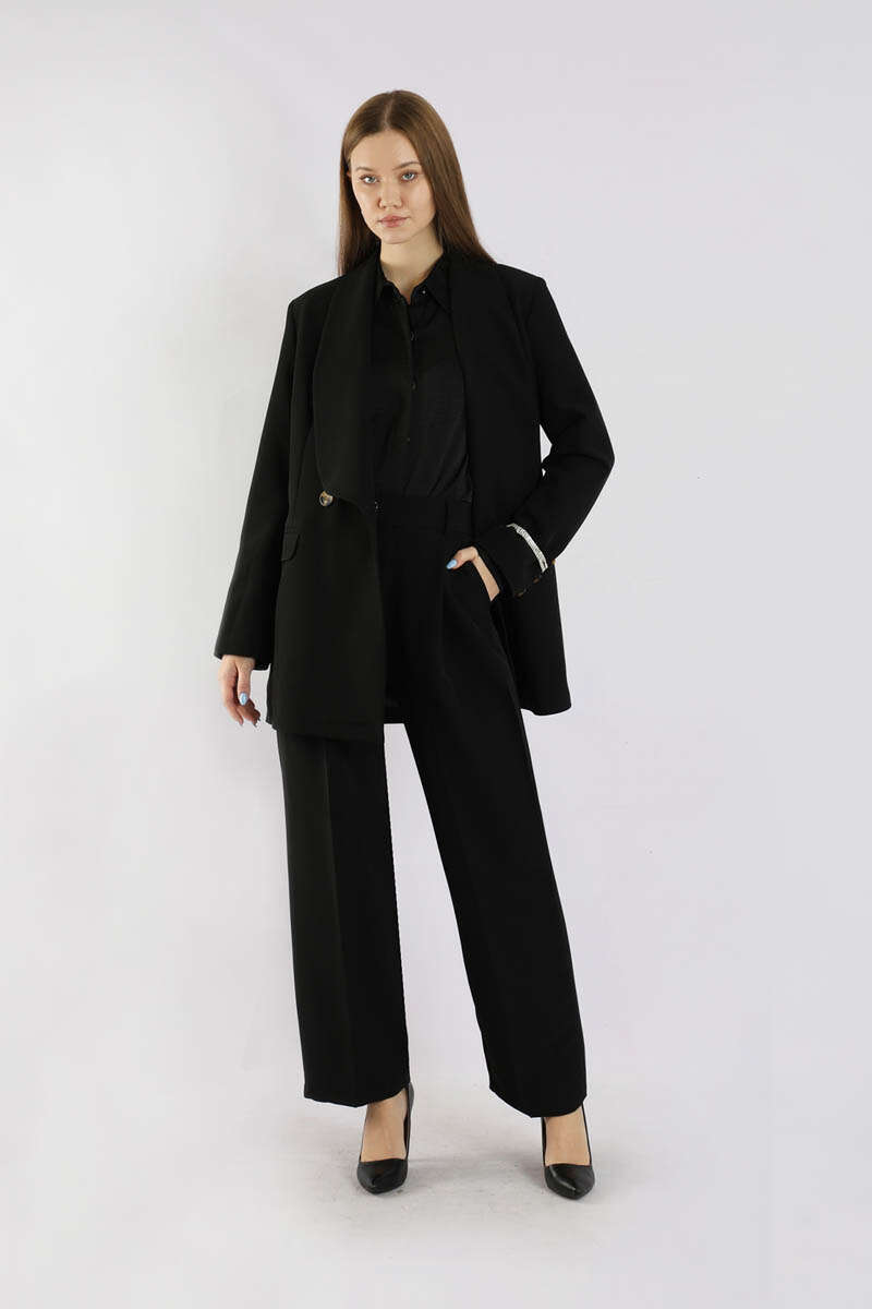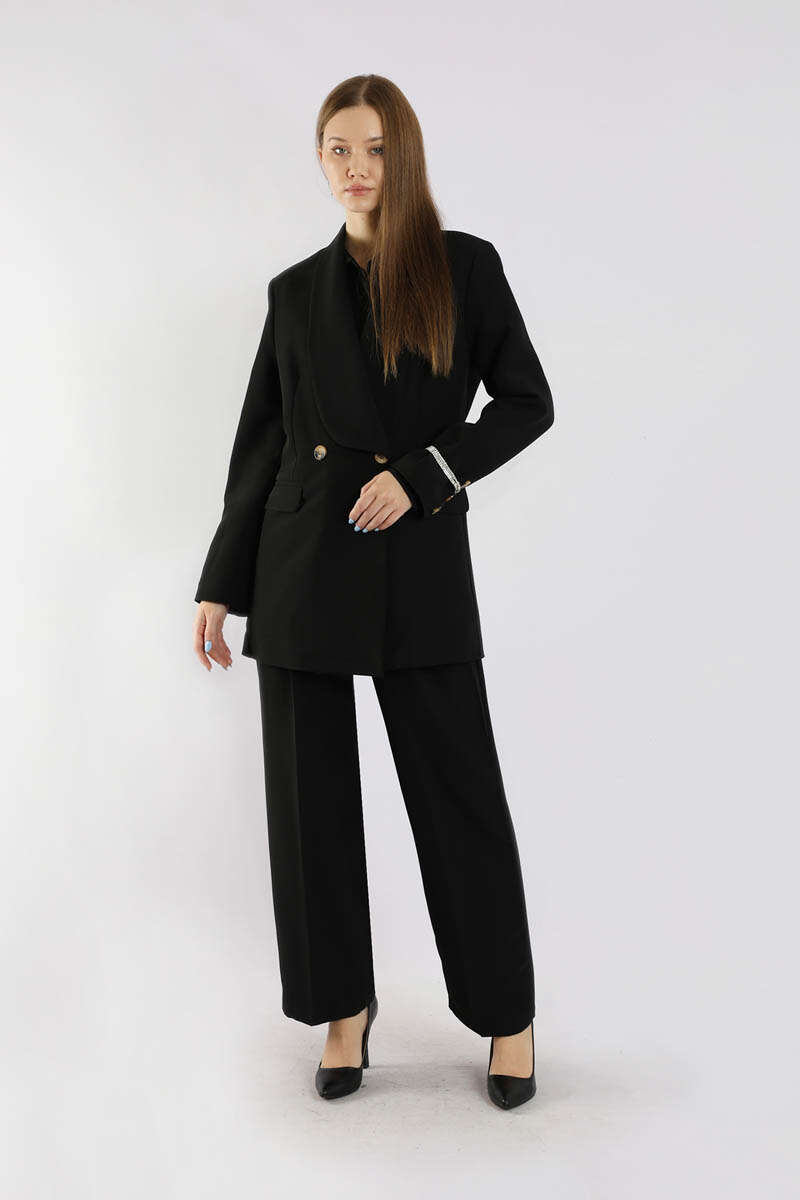 Şal Yaka Ceket Takım Siyah. Şal yakalıdır. Kapaklı cep detaylıdır. Önden pens detaylıdır. Arkadan çift yırtmaçlıdır. Pile detaylıdır. Pantolon beli lastiklidir. Pantolon ceplidir. Günlük kullanım ve özel günlerinizde tercih edebilirsiniz.