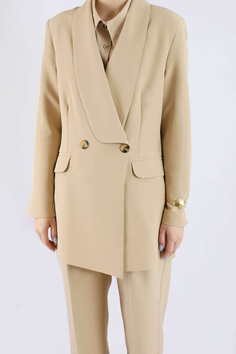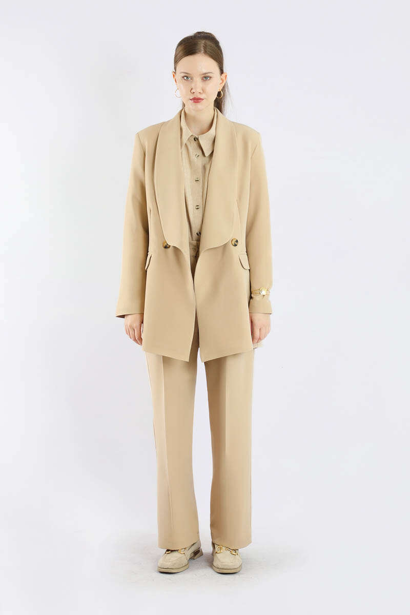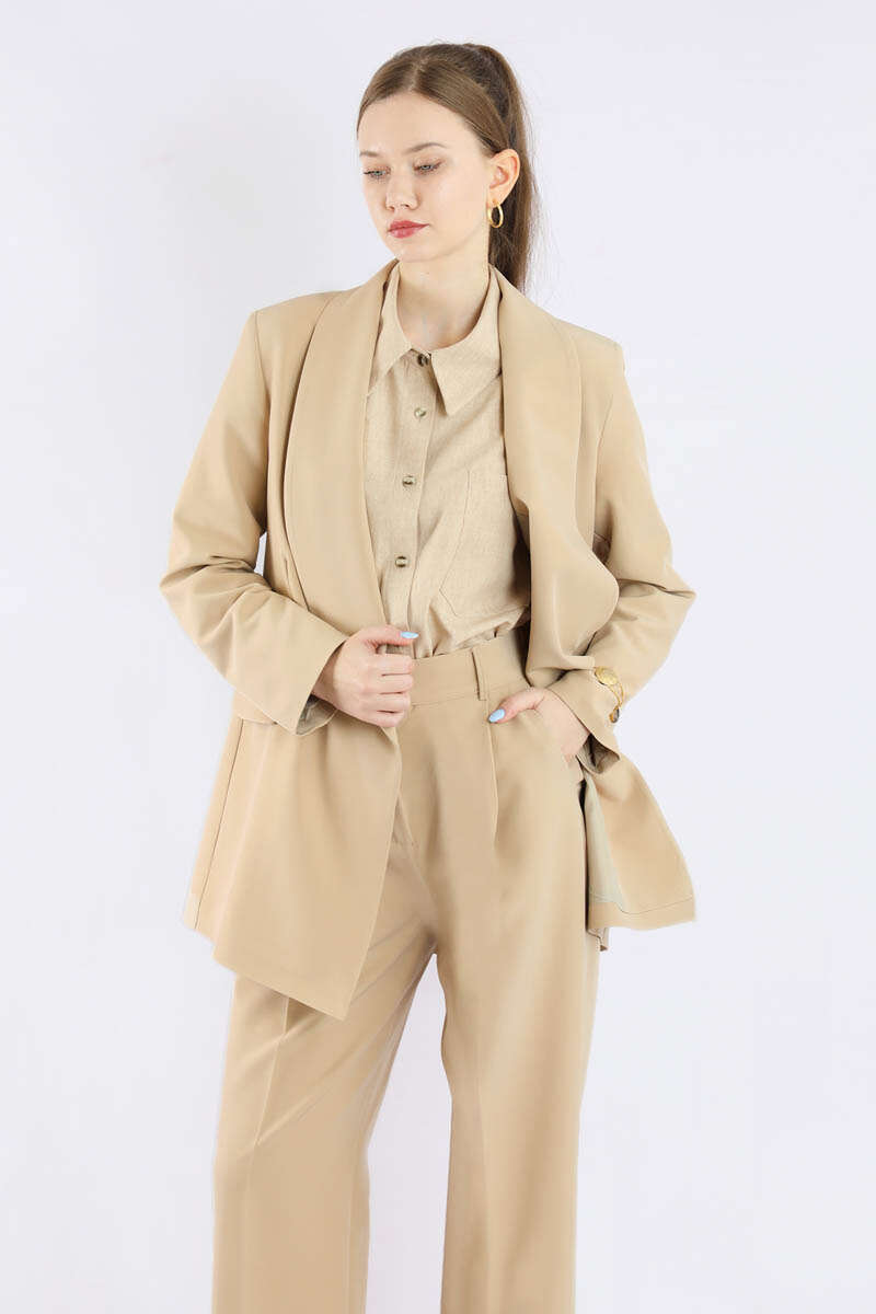 Şal Yaka Ceket Takım Taş. Şal yakalıdır. Kapaklı cep detaylıdır. Önden pens detaylıdır. Arkadan çift yırtmaçlıdır. Pile detaylıdır. Pantolon beli lastiklidir. Pantolon ceplidir. Günlük kullanım ve özel günlerinizde tercih edebilirsiniz.
