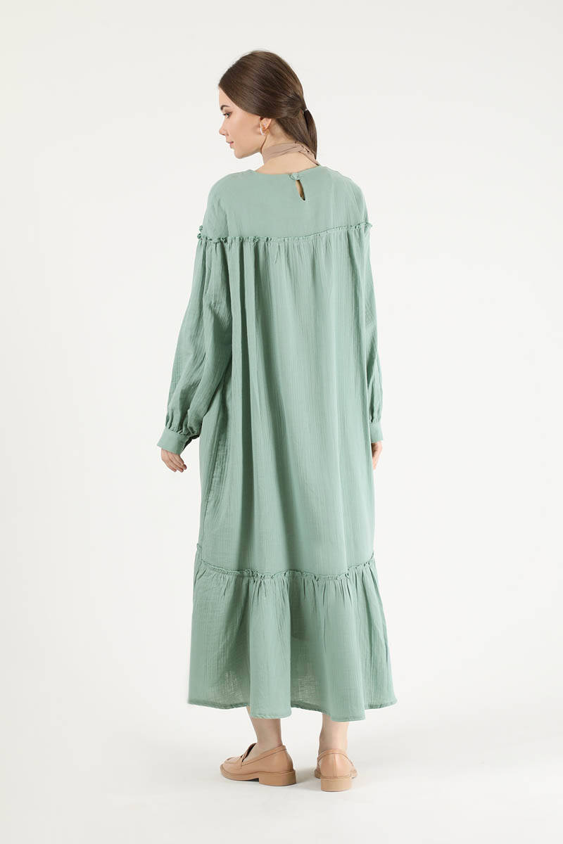 Loose Dress Mint. It has pockets. It is shabby detailed. This product, which impresses with its shabby processing detail, is one of the favorite products of the new season.