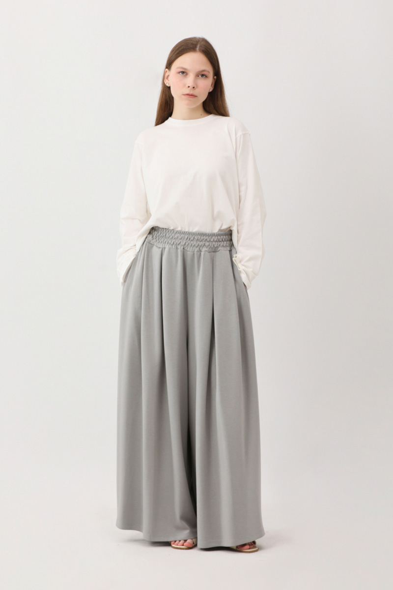 Salaş Modal Pantolon Gri. Yüksek beldir, belden lastiklidir, bol paçadır, önden pile detaylıdır, yandan ceplidir, düğmesiz ve fermuarsızdır, Günlük kullanım ve özel günlerinizde tercih edebilirsiniz.