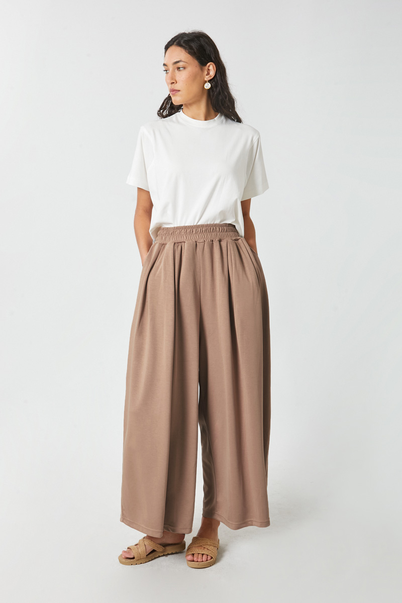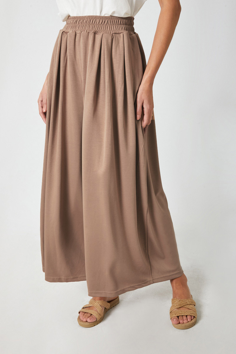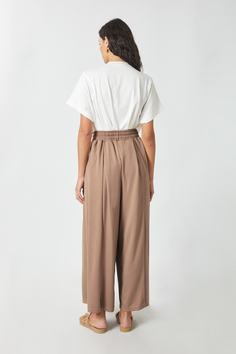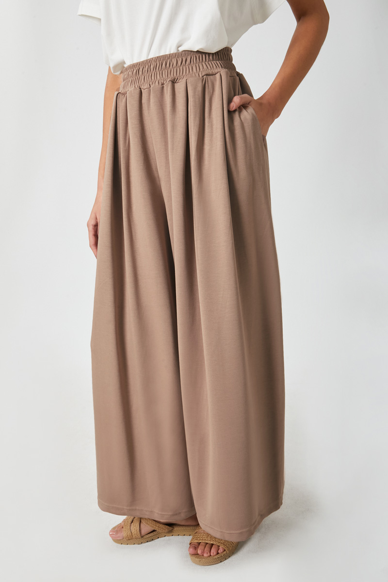 Salaş Modal Pantolon Vizon. Yüksek beldir, belden lastiklidir, bol paçadır, önden pile detaylıdır, yandan ceplidir, düğmesiz ve fermuarsızdır, Günlük kullanım ve özel günlerinizde tercih edebilirsinizaq.