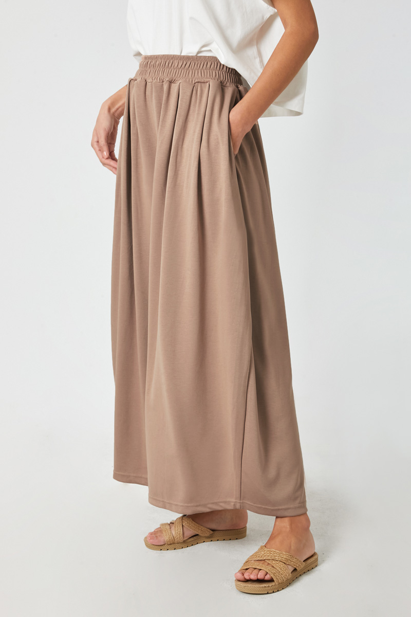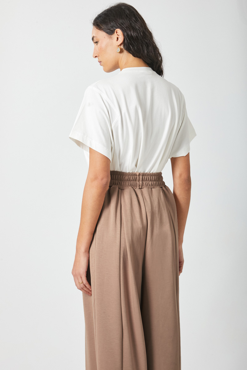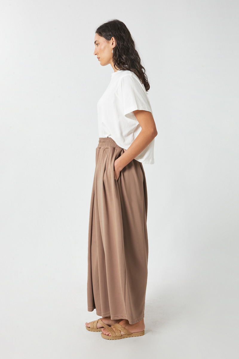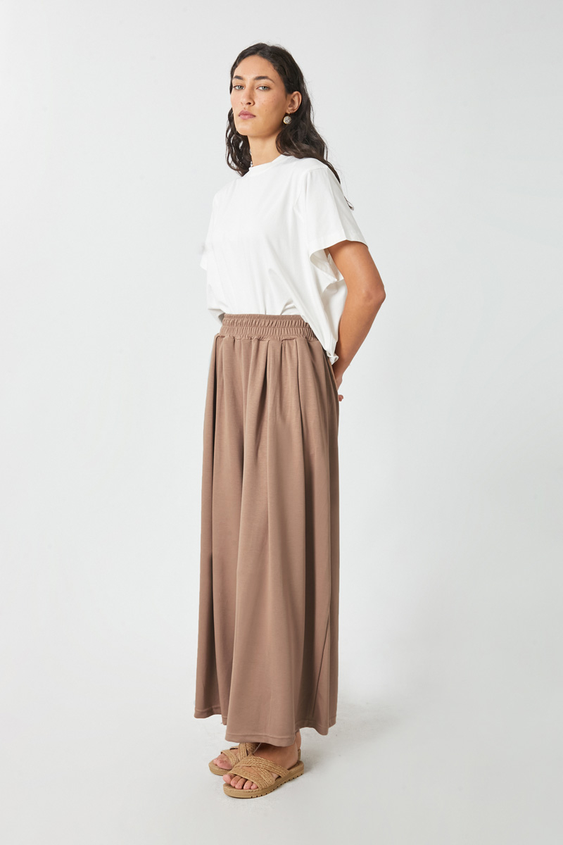 Salaş Modal Pantolon Vizon. Yüksek beldir, belden lastiklidir, bol paçadır, önden pile detaylıdır, yandan ceplidir, düğmesiz ve fermuarsızdır, Günlük kullanım ve özel günlerinizde tercih edebilirsinizaq.