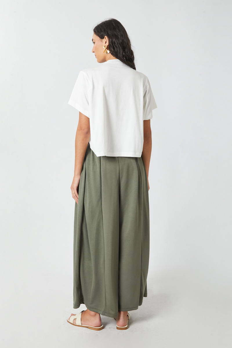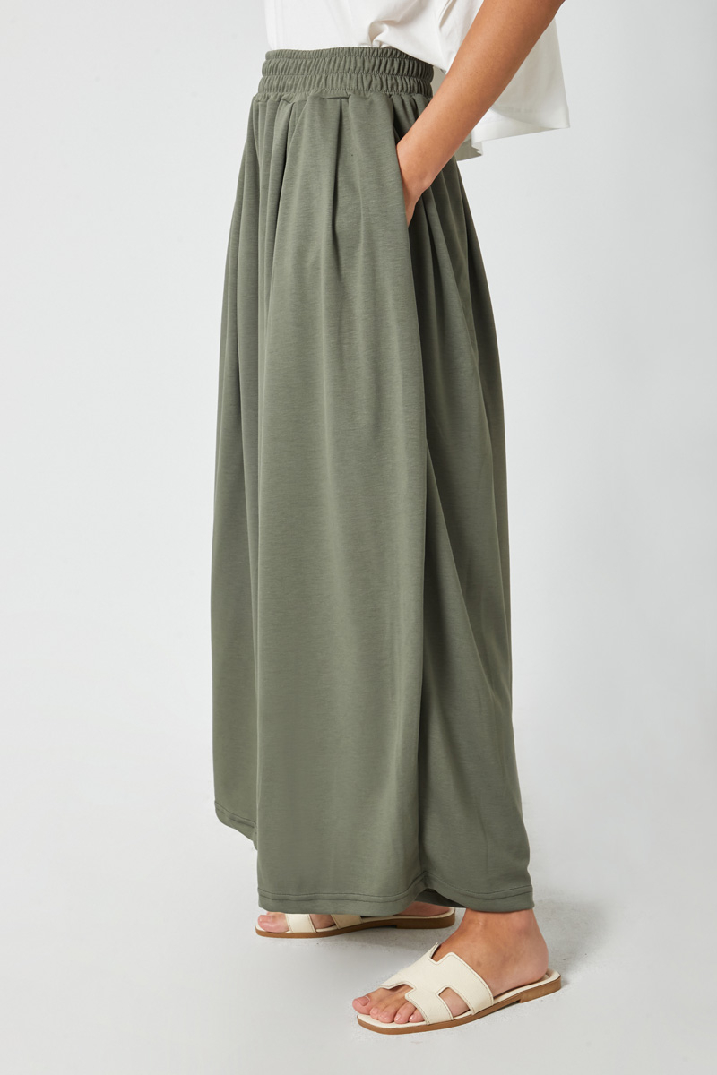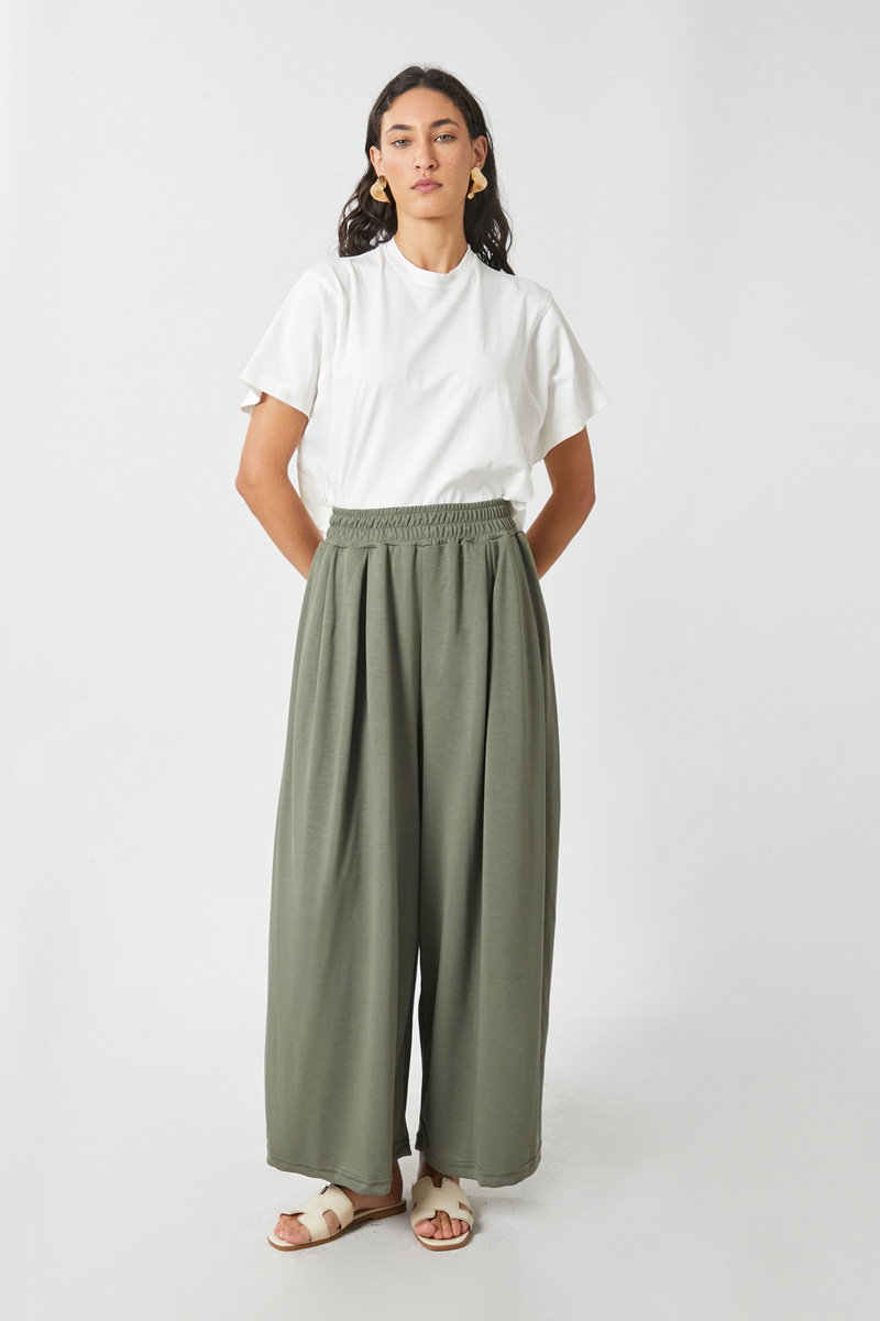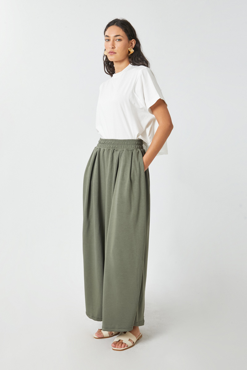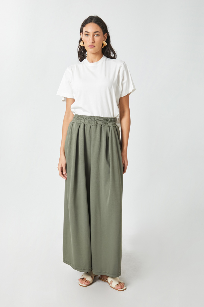 Salaş Modal Pantolon Yeşil. Yüksek beldir, belden lastiklidir, bol paçadır, önden pile detaylıdır, yandan ceplidir, düğmesiz ve fermuarsızdır, Günlük kullanım ve özel günlerinizde tercih edebilirsiniz.