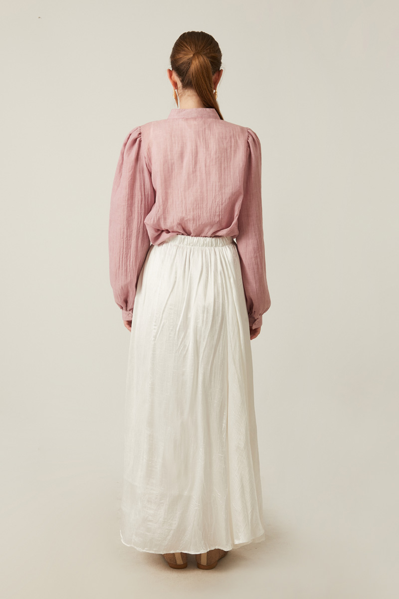 Elegant and modern black long skirt stands out with its pleated satin fabric. Its fluid structure and graceful drape make it suitable for any occasion. A timeless piece that will complement your style both in daily wear and special events.