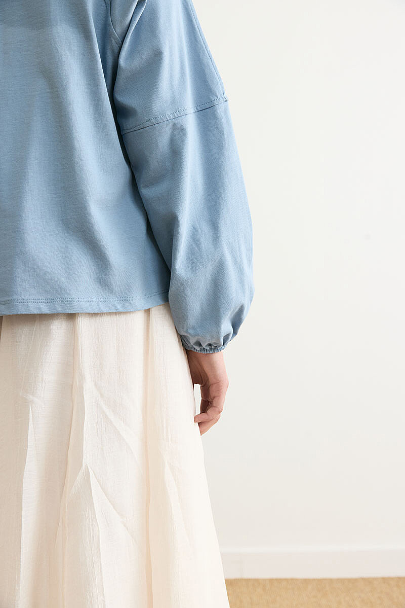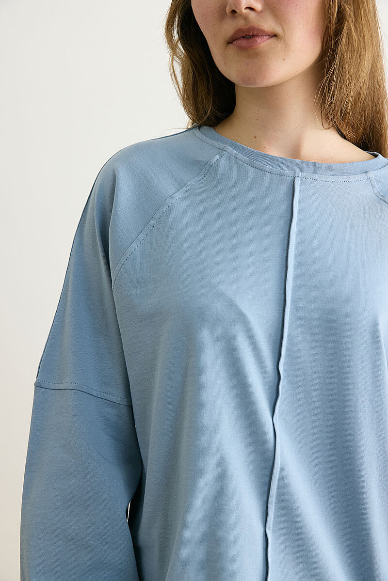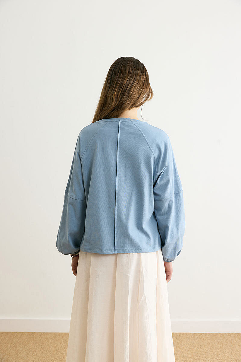 Şerit Dikişli Uzun Kollu Tişört Duman Mavisi