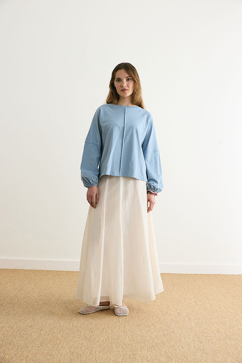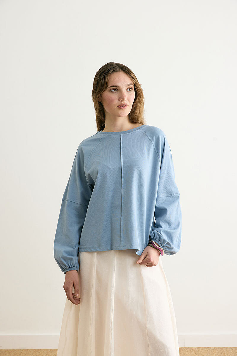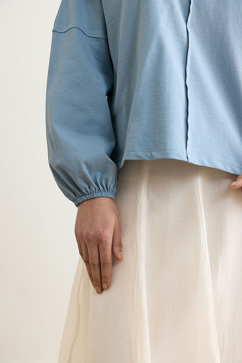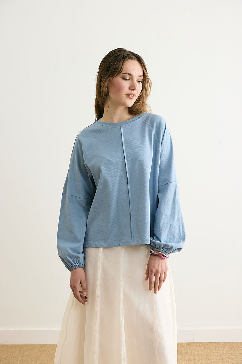 Şerit Dikişli Uzun Kollu Tişört Duman Mavisi