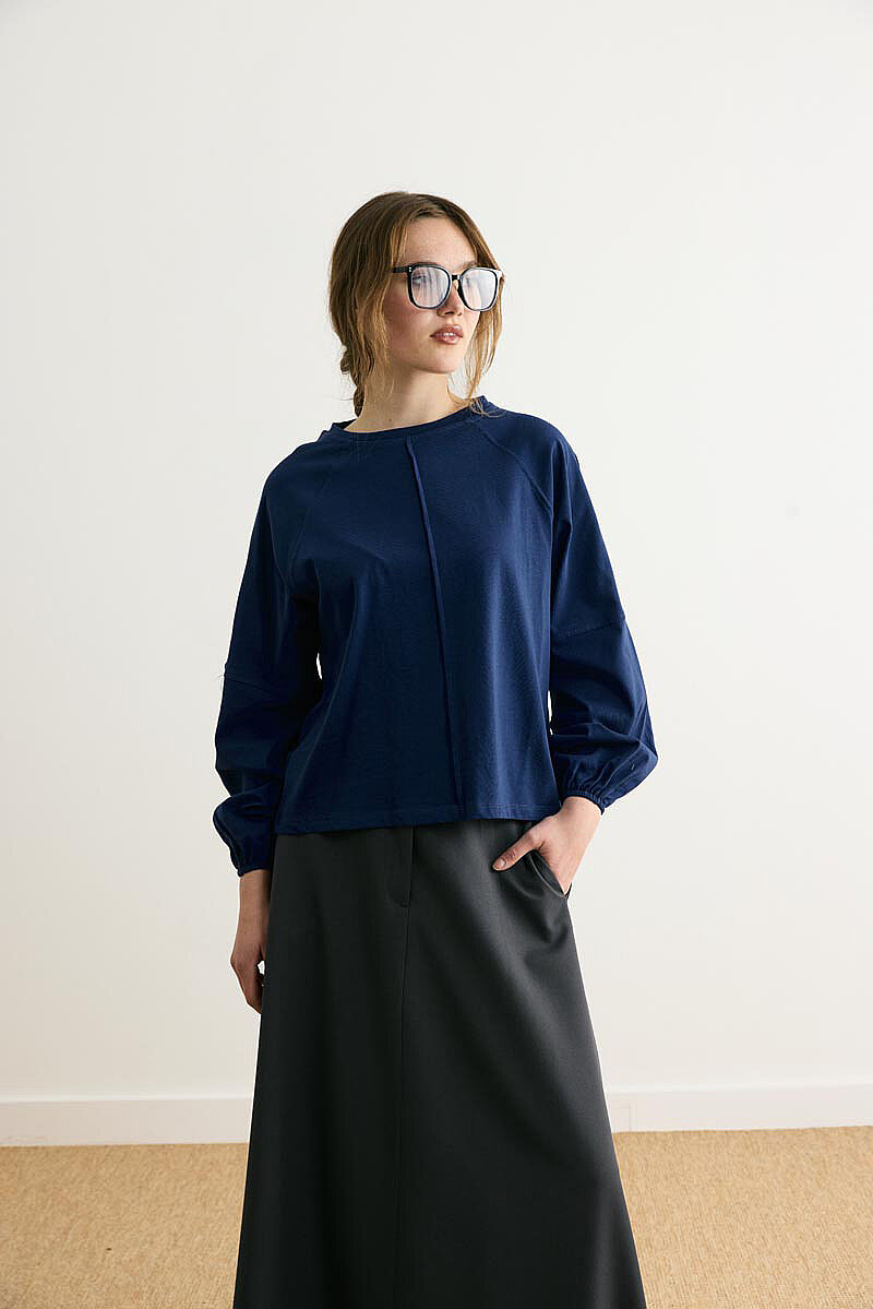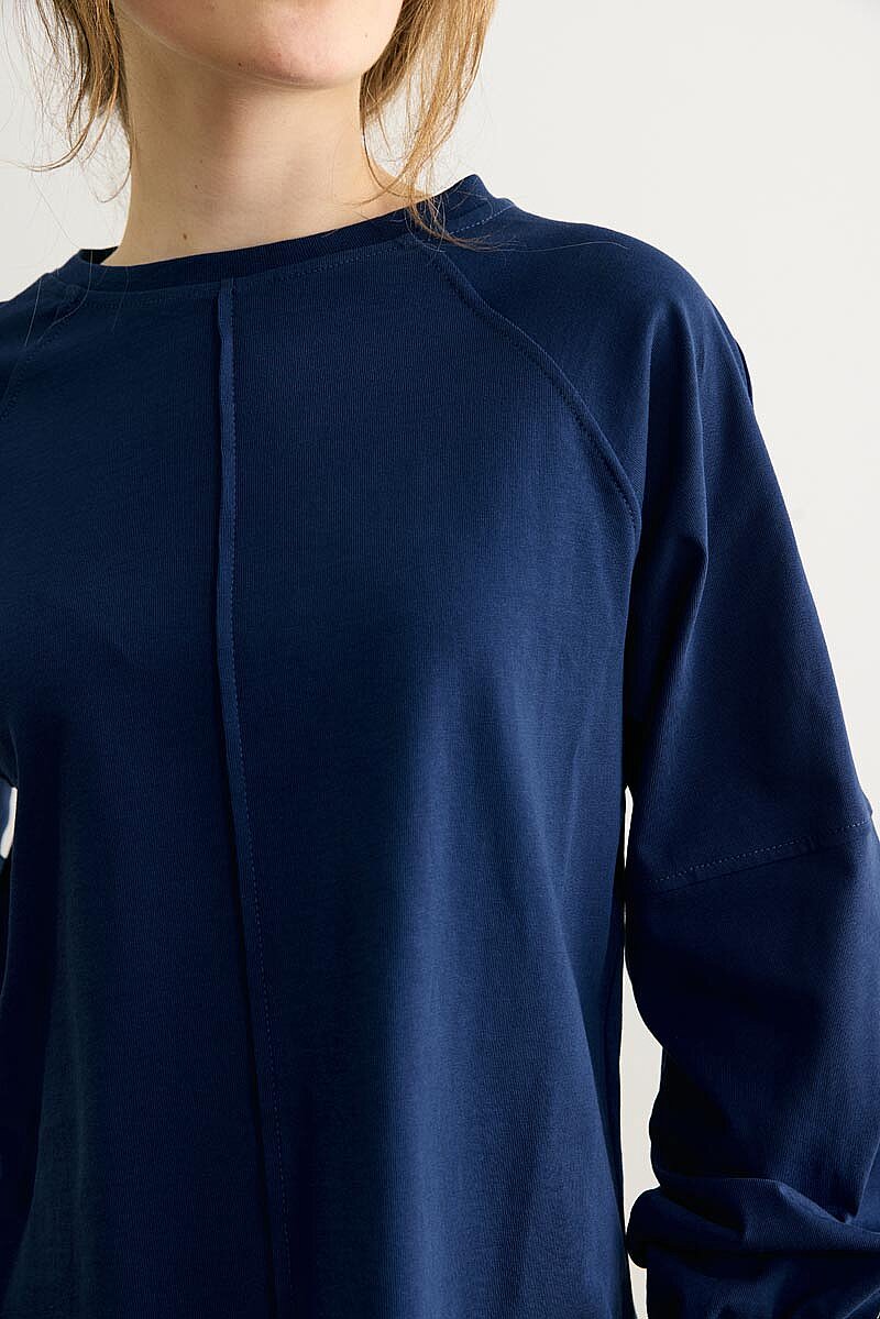 Şerit Dikişli Uzun Kollu Tişört Lacivert