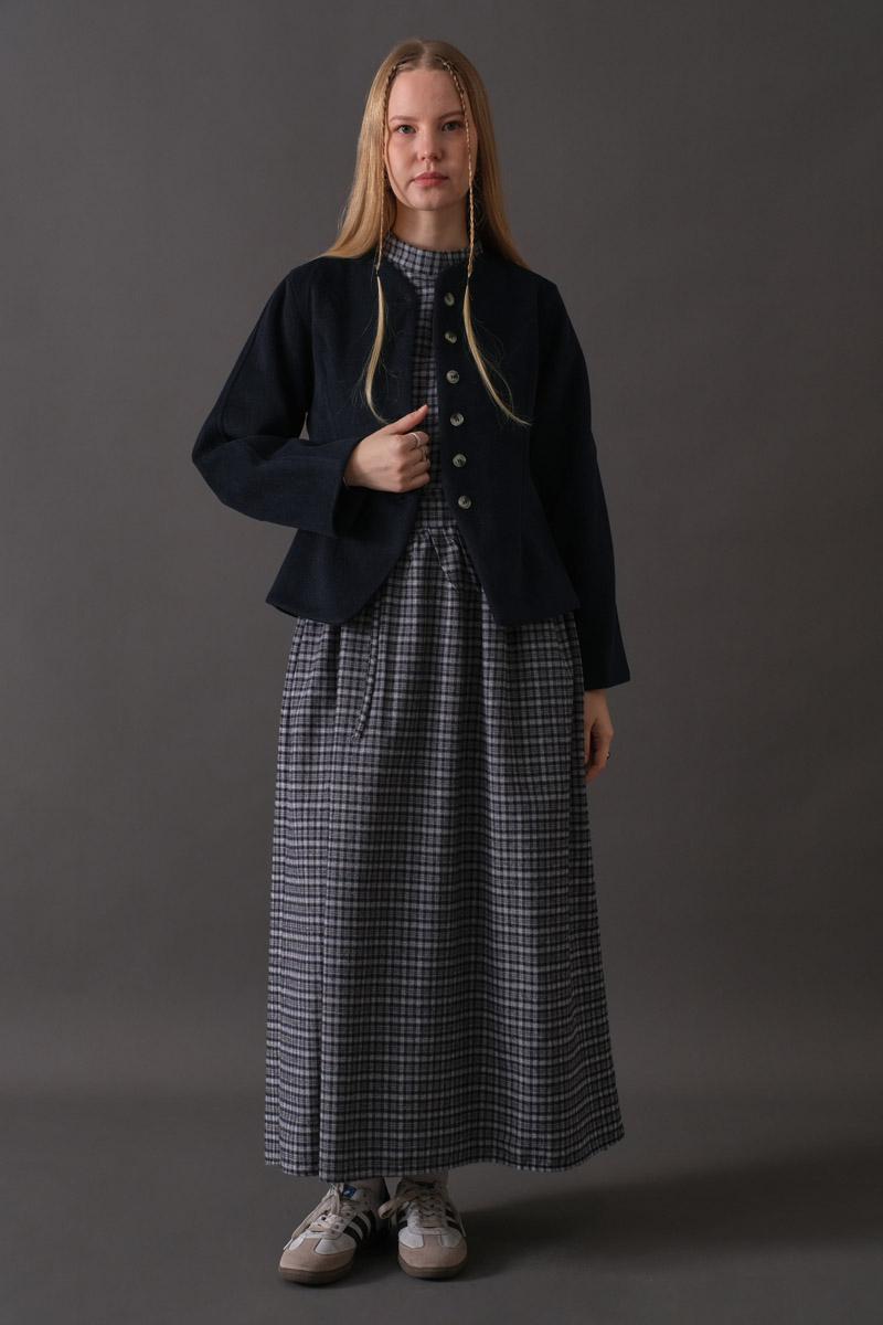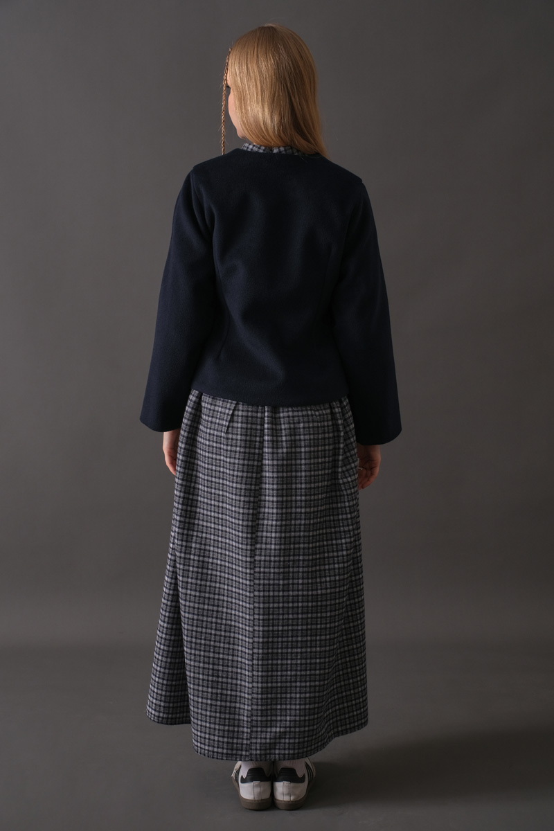 Short Jacket with Dart Detail Navy adds effortless sophistication to your daily style with its modern cut and minimal lines. The front dart seams shape the silhouette beautifully, while the faux wool cashmere-like fabric provides warmth and comfort. Thanks to its short length, it pairs easily with high-waisted skirts, trousers, and dresses. A refined choice for those who want a subtle yet distinctive touch in their city look.