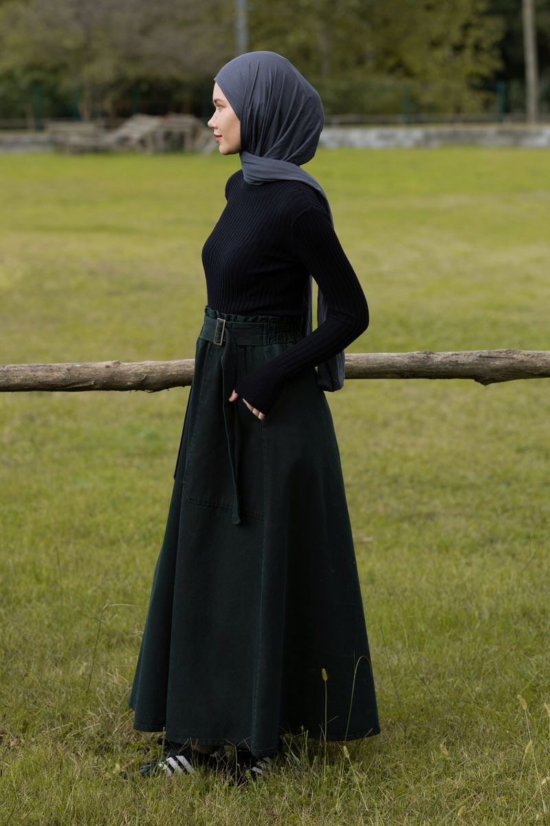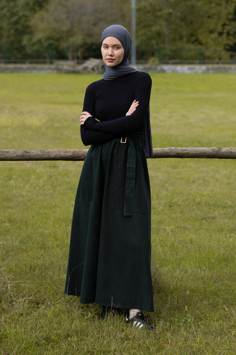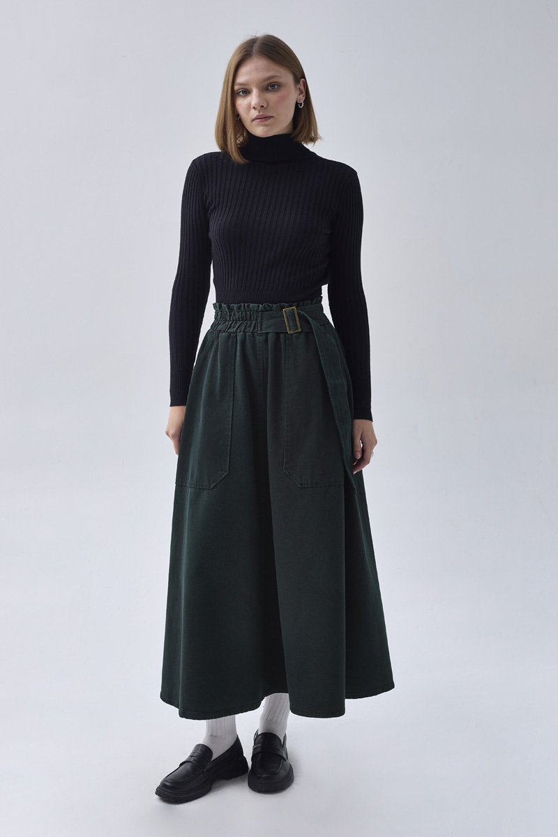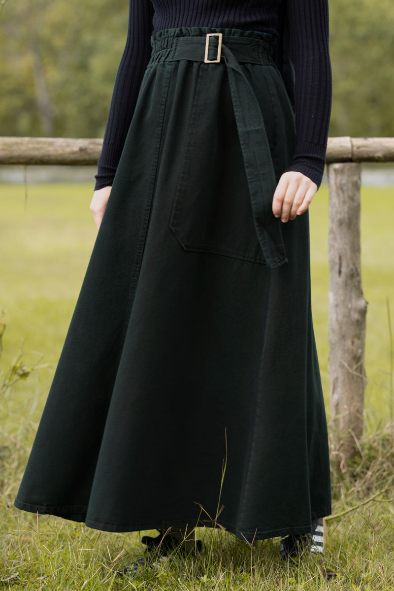 Side-Buckled Denim Skirt – Dark Tint Green