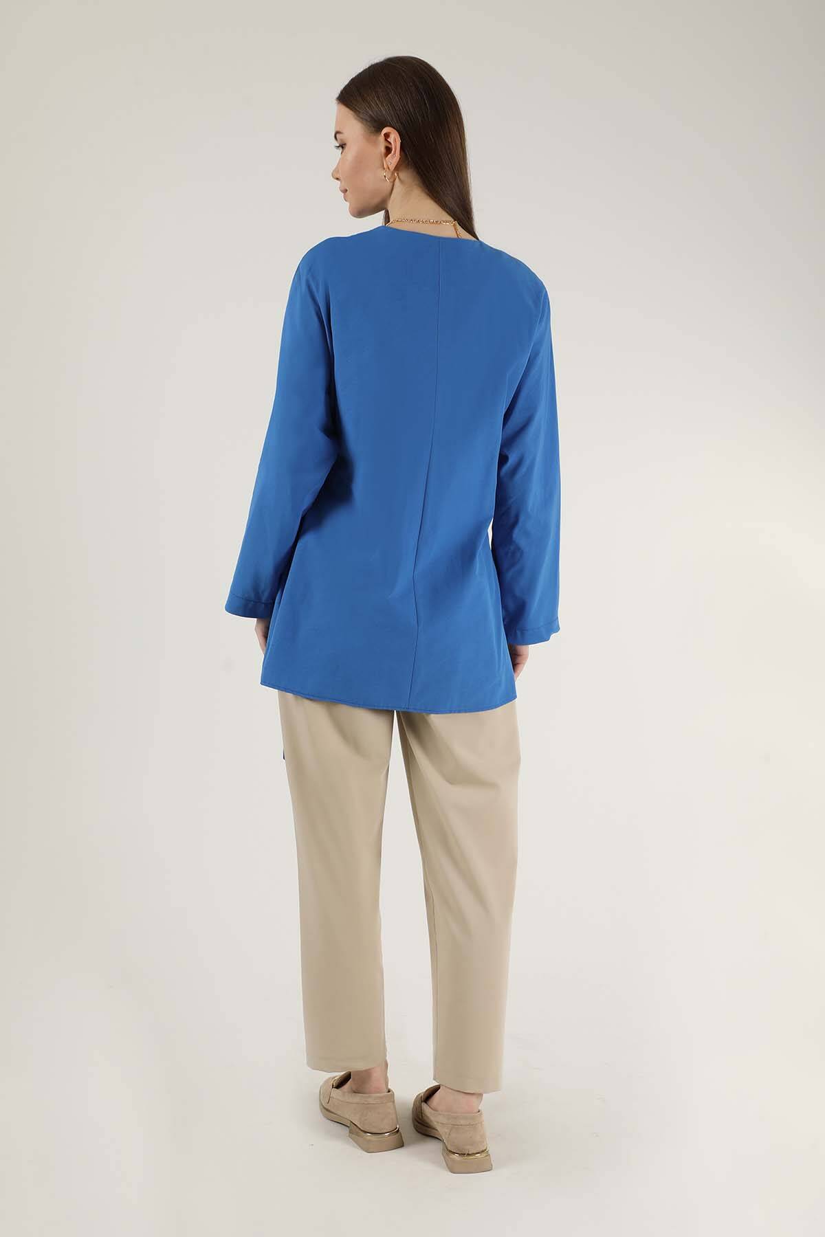 Side Tie Kimono Tunic Blue. ruffle detail. it is layered. It is V-neck. slit detail available. You can choose it for your special days or as daily use.