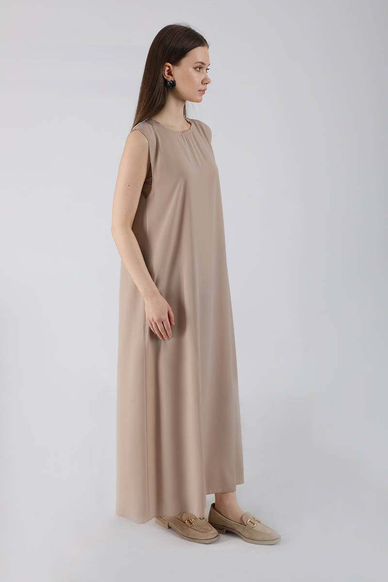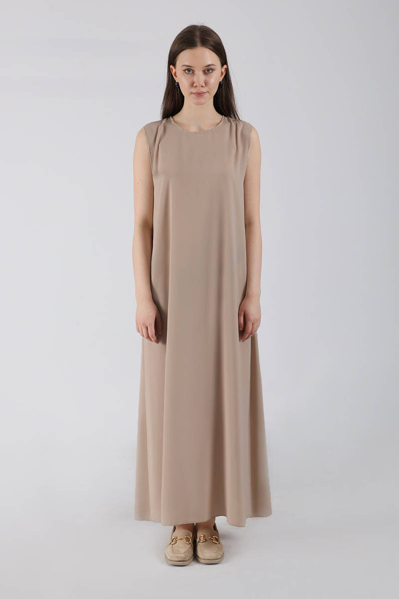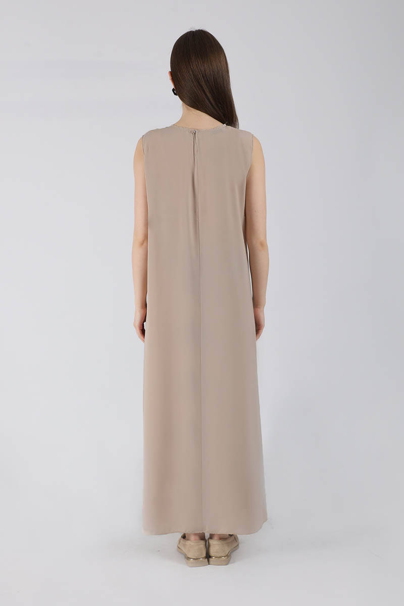 Sıfır Kol İçlik Elbise Koyu Vizon