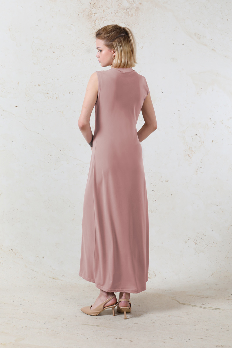Likralı İç Elbise Gül Kurusu. Bisiklet yaka, sıfır kol. Kumaşı sandy likralı esnek bir kumaştır. Tok bir duruşu vardır. Ürün renkleri canlıdır.