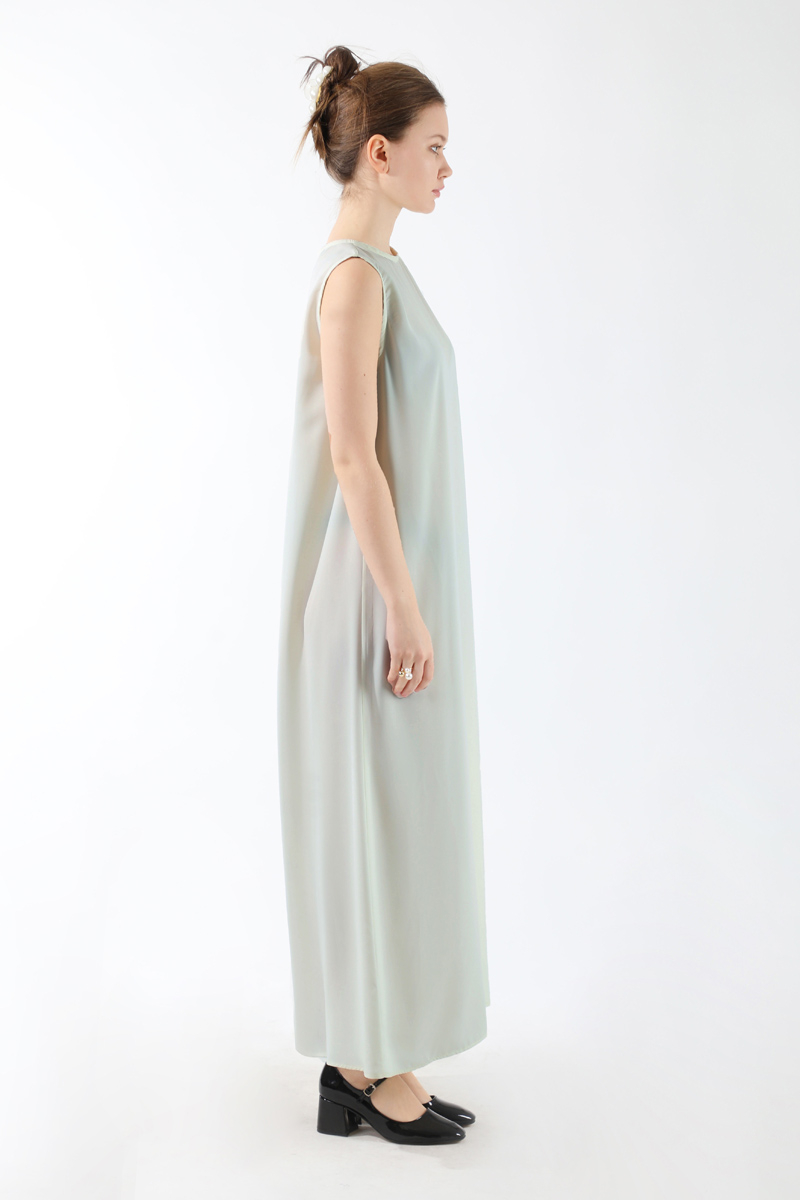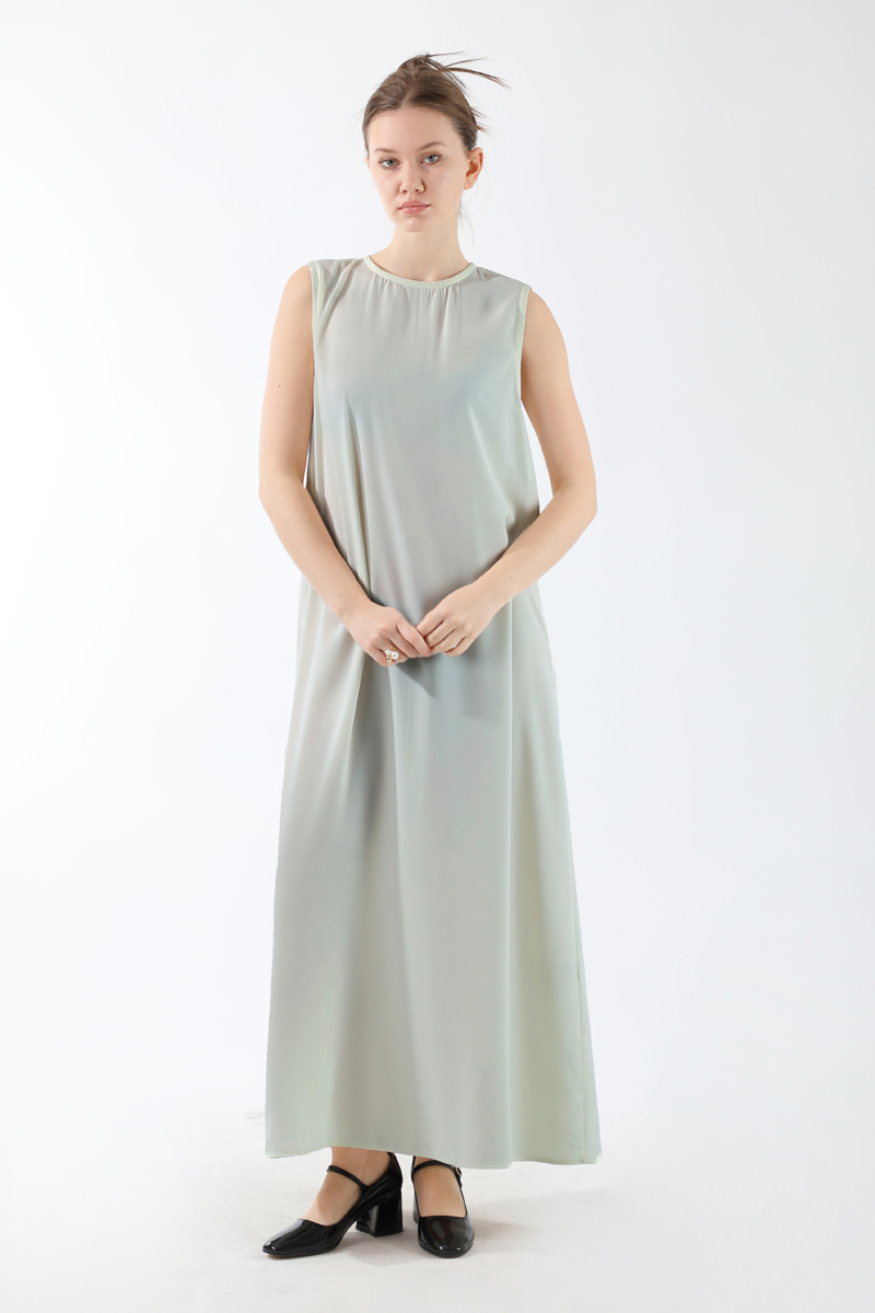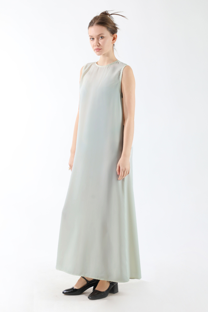 Sıfır Kol Uzun İçlik Elbise Açık Gri