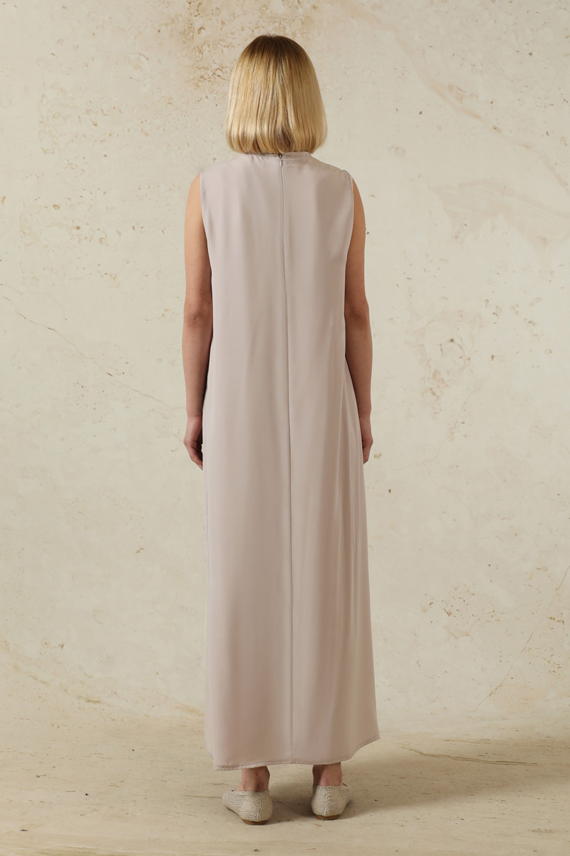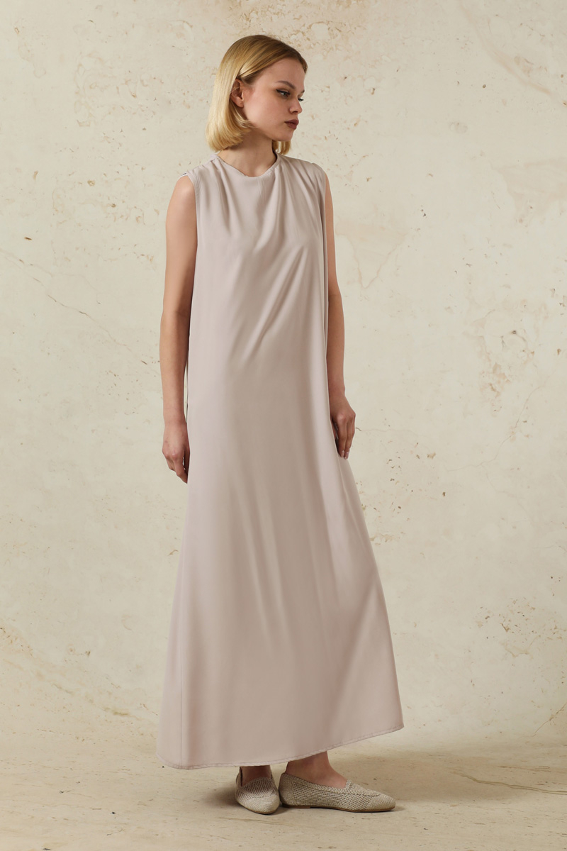 Sıfır Kol Uzun İçlik Elbise Toz Pembe