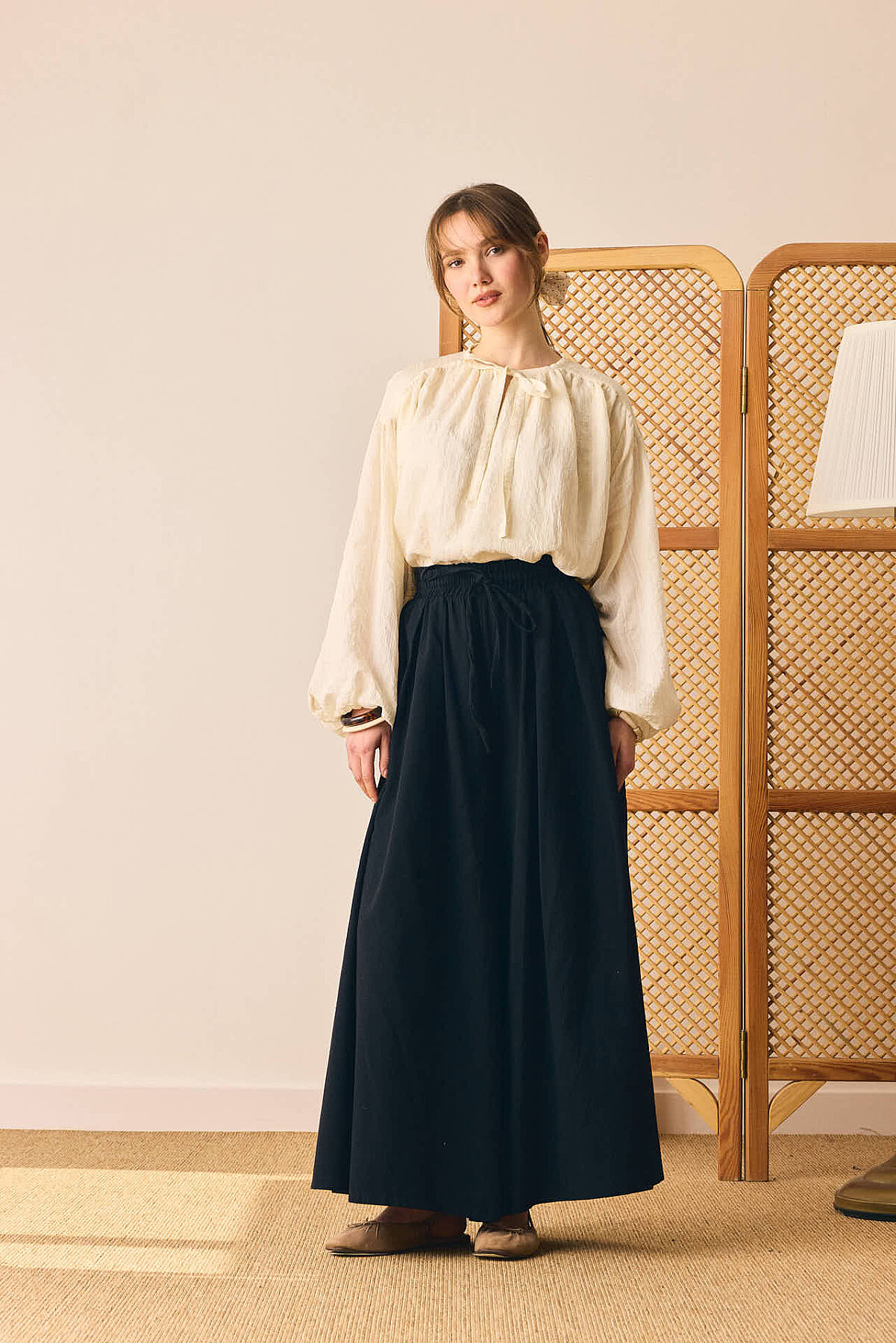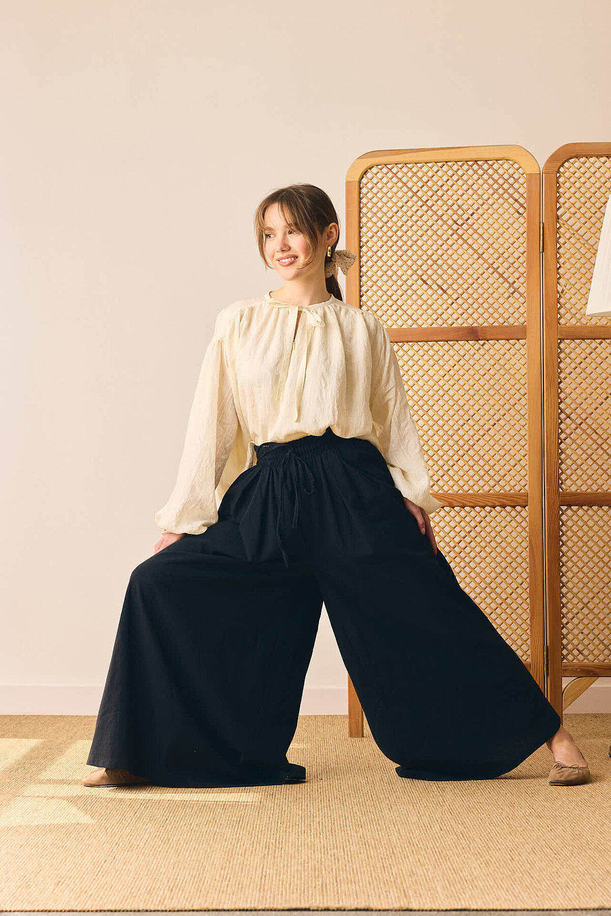 Doğal şile bezi dokusu ve ferah yapısıyla öne çıkan Şile Bezi Bol Pantolon, rahat ve dengeli bir siluet sunar. Geniş kesimi sayesinde gün boyu konfor sağlarken, beli lastikli yapısı pratik bir kullanım sunar. Bel kısmındaki büzgü detayı tasarıma hareket kazandırır. Hafif ve nefes alabilen yapısıyla özellikle sıcak havalarda rahatlıkla tercih edilebilecek, günlük stilin güçlü tamamlayıcılarından biridir.