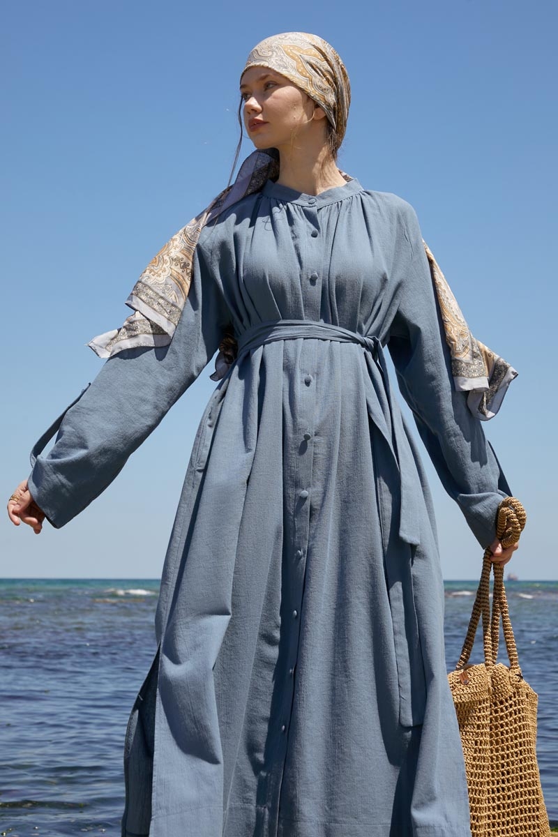 Şile Bezi Tunik Takım İndigo, Tunik kısmının dökümlü yapısı, hareket özgürlüğü sağlarken, altına kombinlenen düz kesim pantolon şıklığı tamamlar. Deniz kenarında olduğu kadar şehirde de şıklığınızı ön plana çıkaracak bu takım,