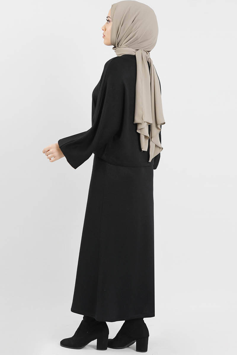 Skirted Wool Knitwear Suit Black - 1Skirted Wool Knitwear Suit Black - 2Skirted Wool Knitwear Suit Black - 3