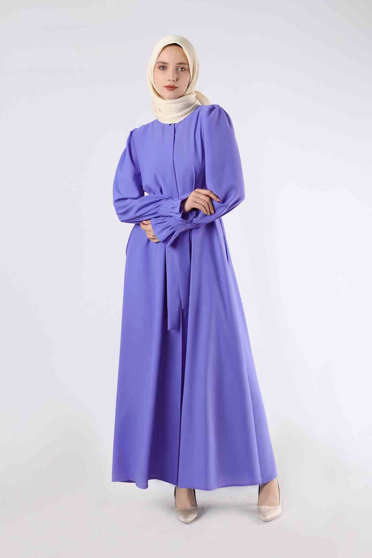Cuff Pleated Dress Abaya Lilac. It has pockets. It is belted. This product, which draws attention as the key to being comfortable and stylish in daily use, is one of the favorite products of the new season.