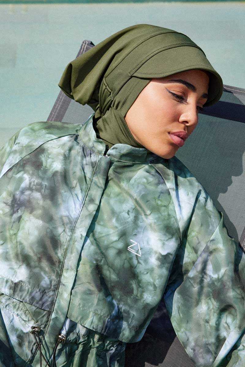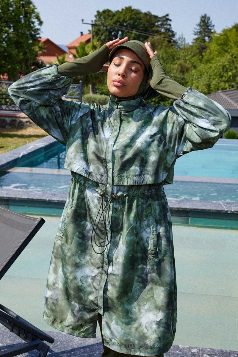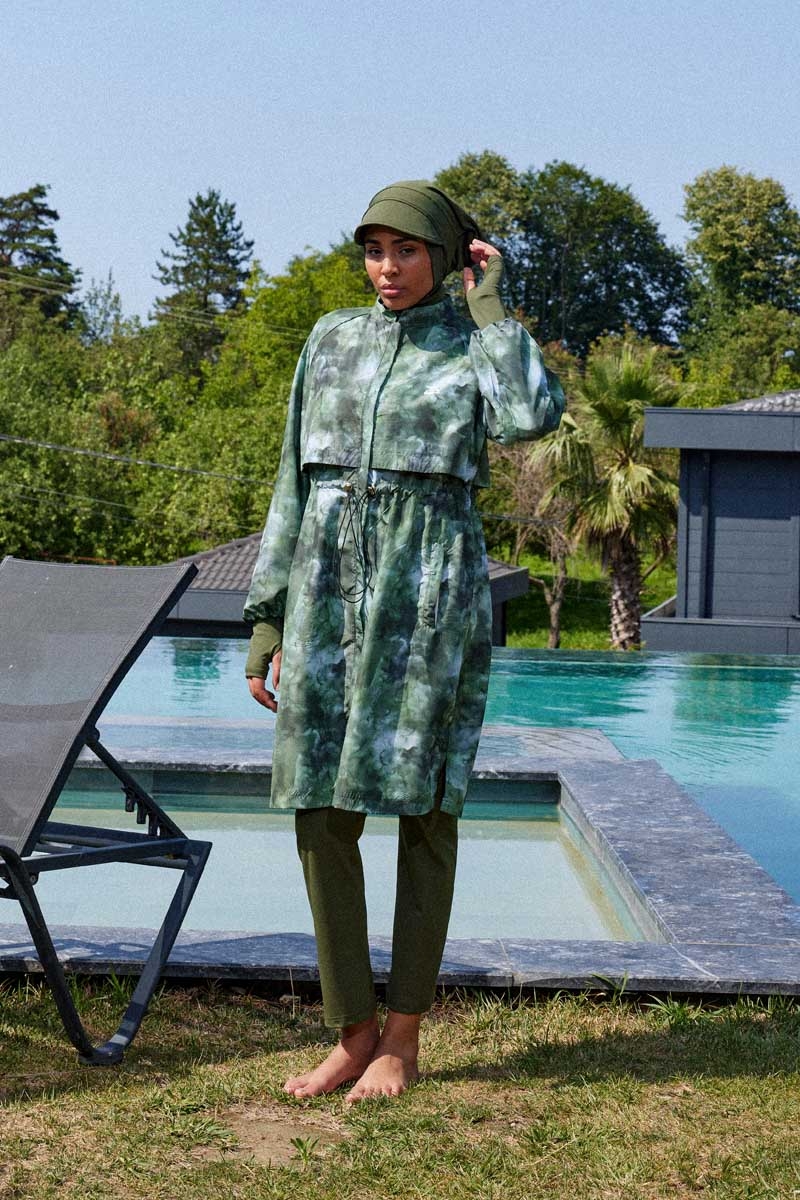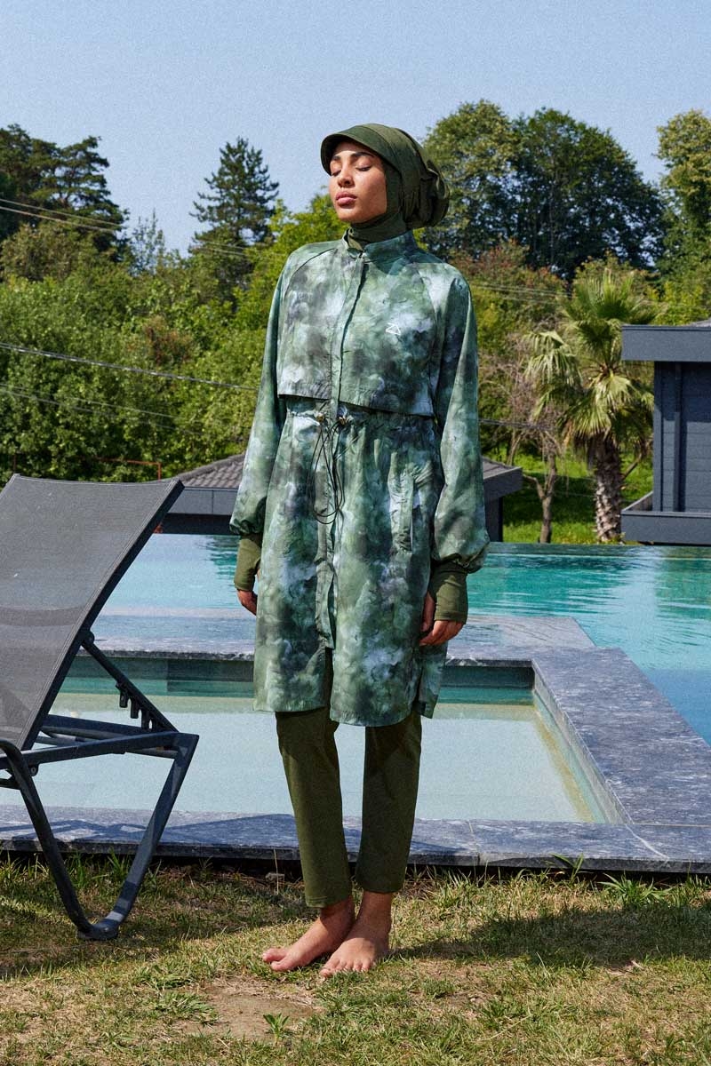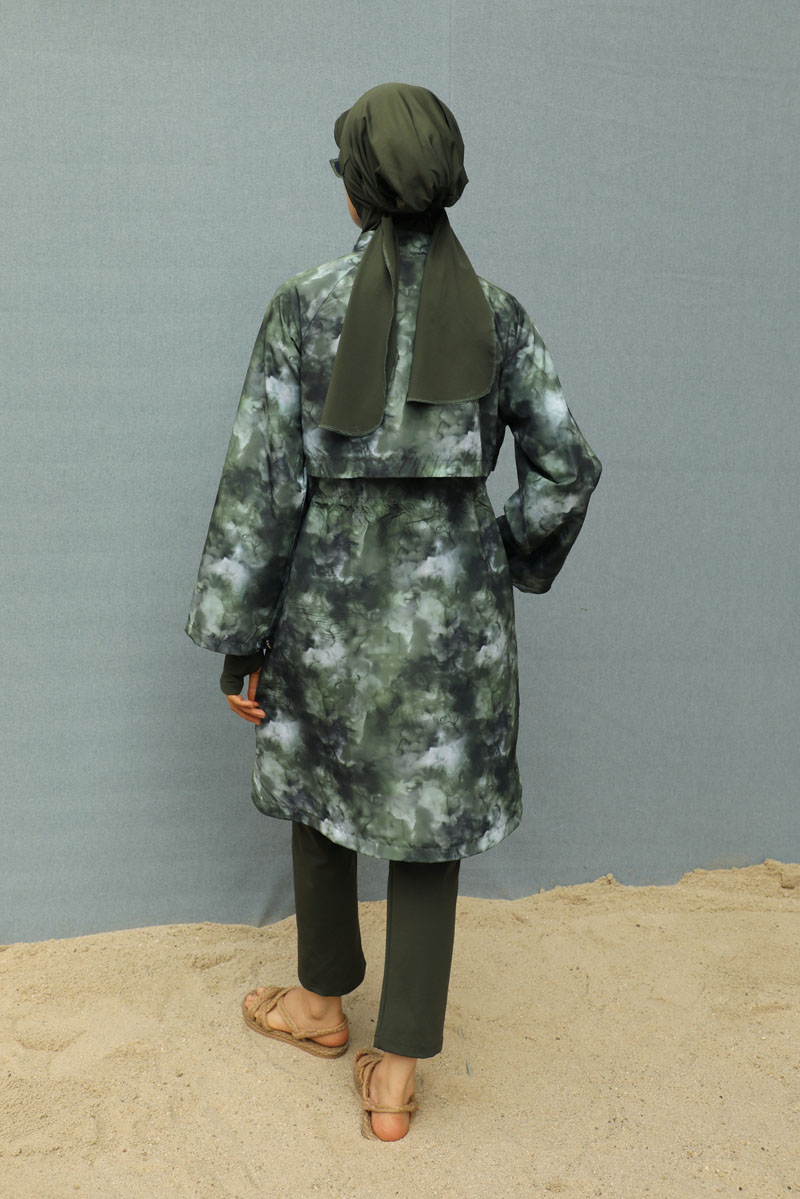 Soyut Desenli Tesettür Mayo Haki