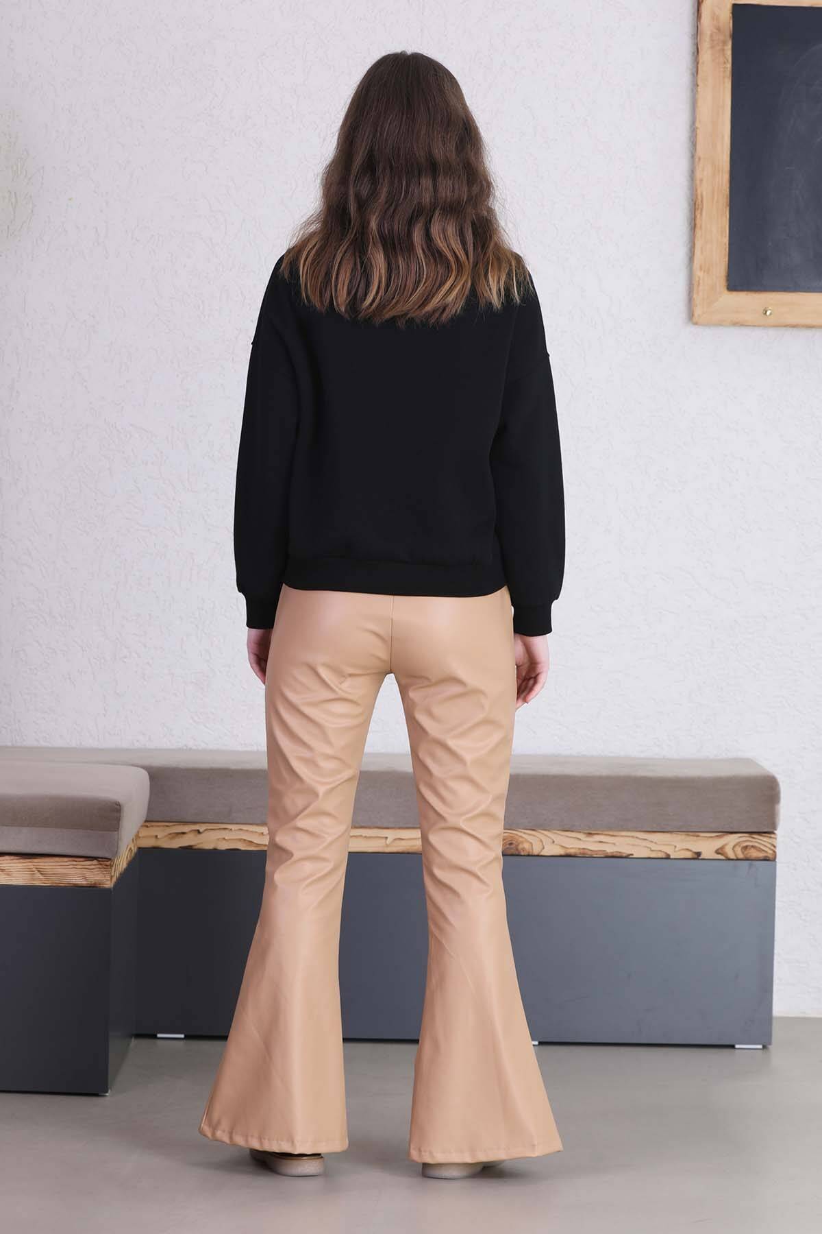 Flared Leather Trousers Beige. It has front seam and slit detail. Side pockets.
