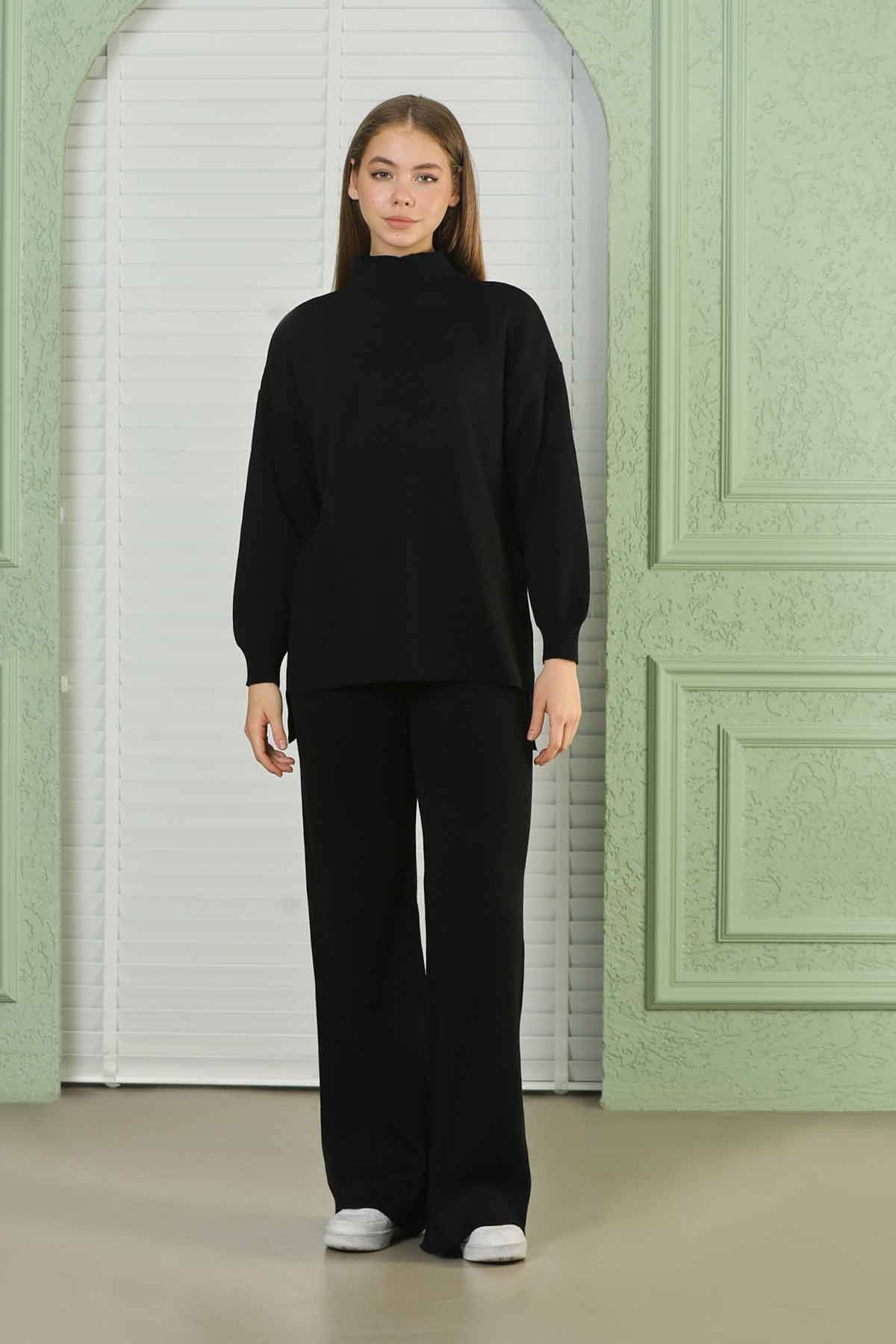 Stand Up Collar Knitwear Suit Black. Stand-up collar sweater. Comfortable and flexible trousers.