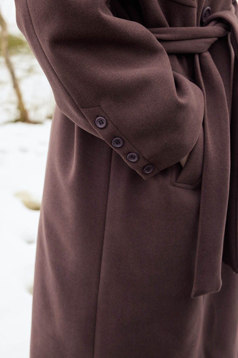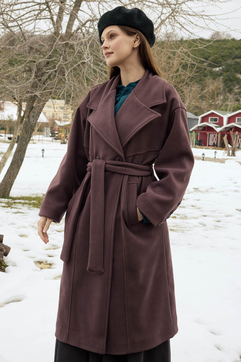 adds a simple yet striking character to winter style with its timeless design and strong stance. The belted silhouette balances the body shape gracefully, while the stitch details on the front panel bring a modern depth to the design. Its firm-textured fabric offers warm and comfortable wear in cold weather. Suitable for a wide range of looks, from everyday outfits to classic combinations.