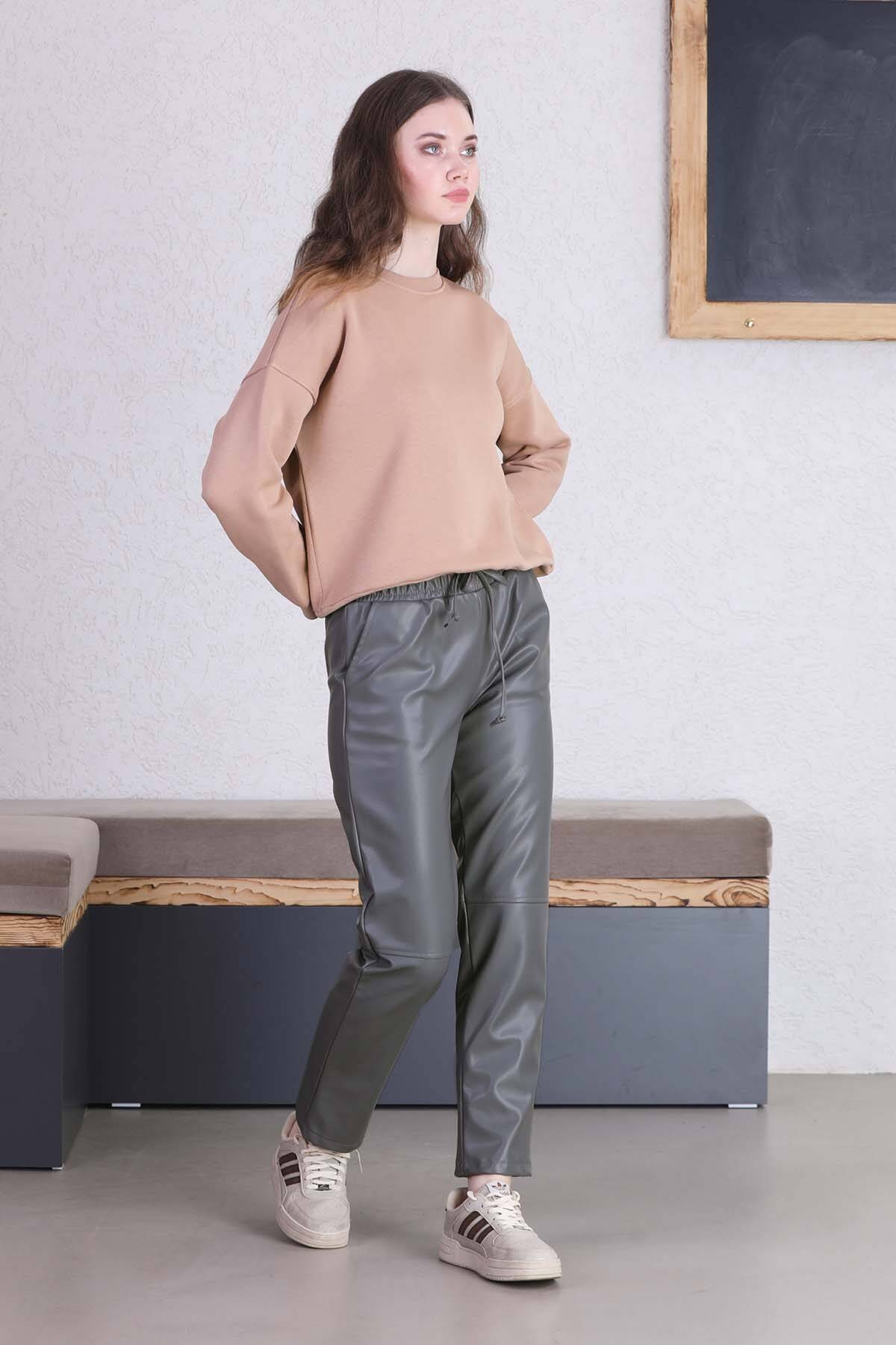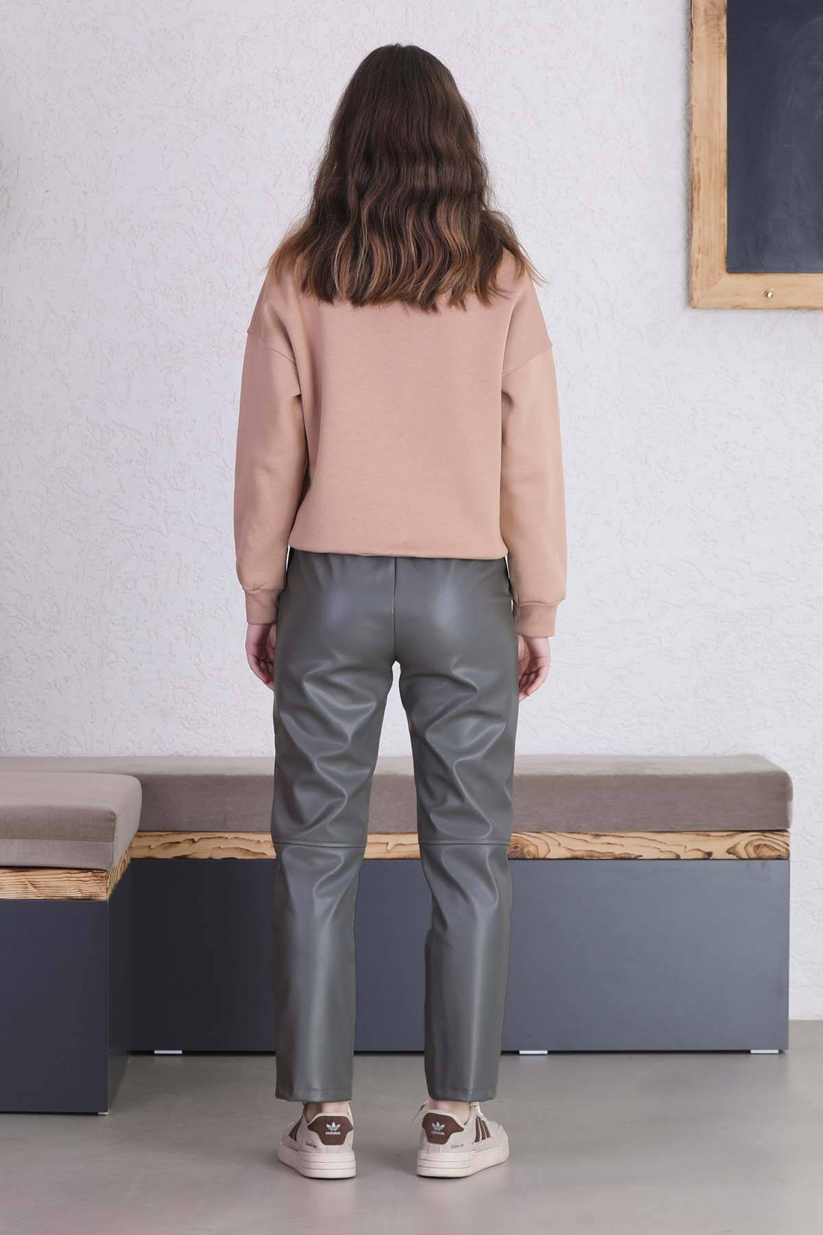 Seam Marked Leather Trousers Gray. Elastic waist. There is a seam detail on the knee. Side pockets.