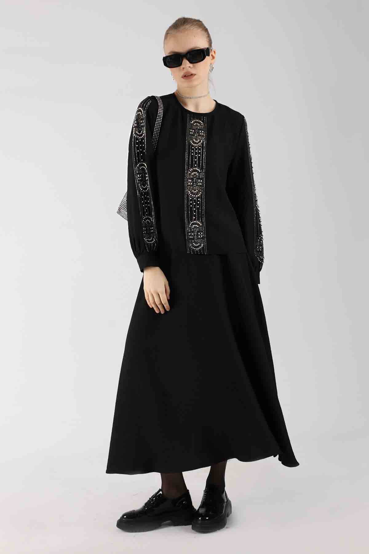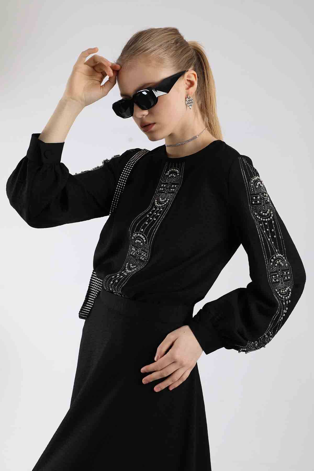 Stone Printed Skirt Suit Black. Stone Printed. Sold as a set with skirt.