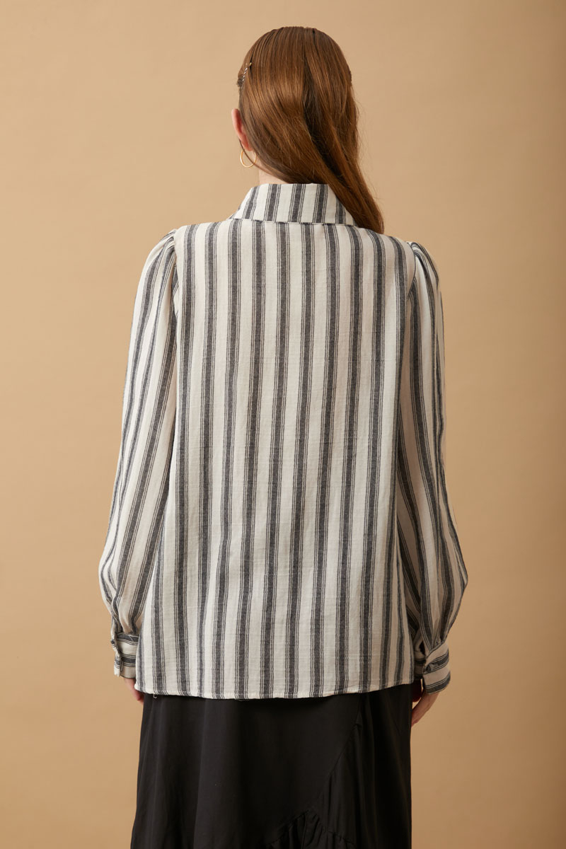 Striped Muslin Shirt Black