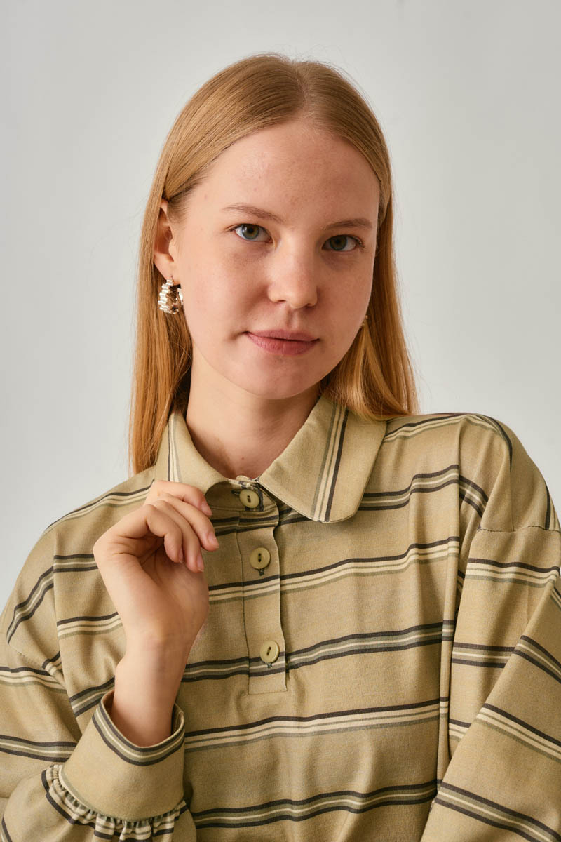 Striped Printed Sweatshirt Earth Green is one of the essential pieces of everyday style, combining a relaxed fit with a timeless striped pattern. The polo collar adds a sporty touch, while its soft-textured fabric provides all-day comfort. Ideal for seasonal transitions, it can be worn alone or layered for versatile styling.