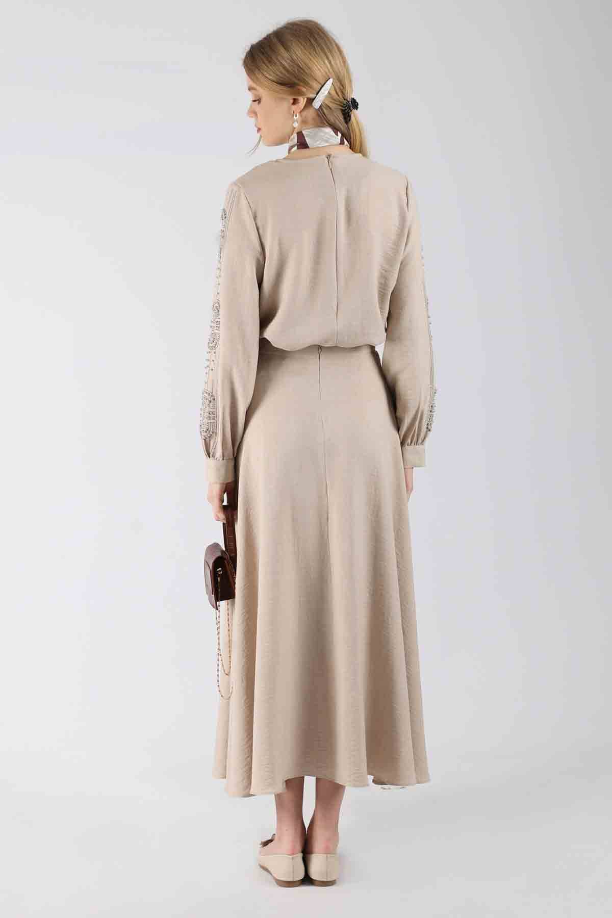 Taş Baskılı Etek Takım Bej