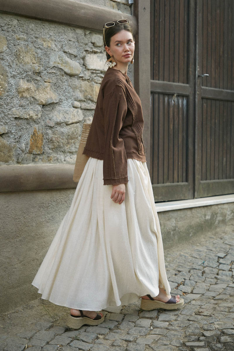 Designed for those seeking a timeless piece in their wardrobe, this dropped shoulder Italian cotton kimono stands out with its natural texture and comfortable fit. Thanks to the lightweight and breathable high-quality Italian cotton fabric, it becomes a must-have for summer and transitional seasons. The double-layer stitching ensures it is not see-through. Its elegant and simple design easily complements any style.