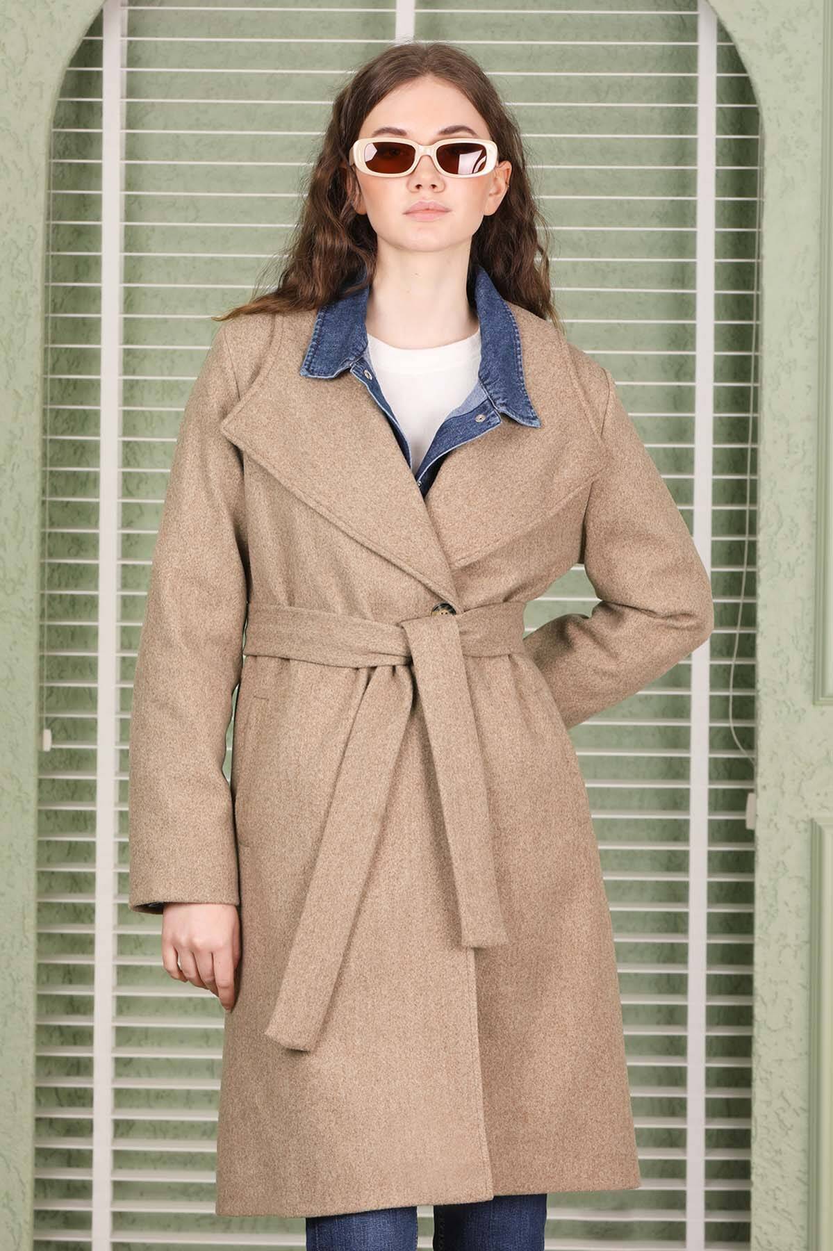 Tek Düğmeli Kaşe Kaban Bej. Oval ingiliz geniş yaka olup tek düğmeli kruvze kapamadır.Trençkot belden kuşaklıdır ve cep detaylıdır. Ürün astarlıdır..