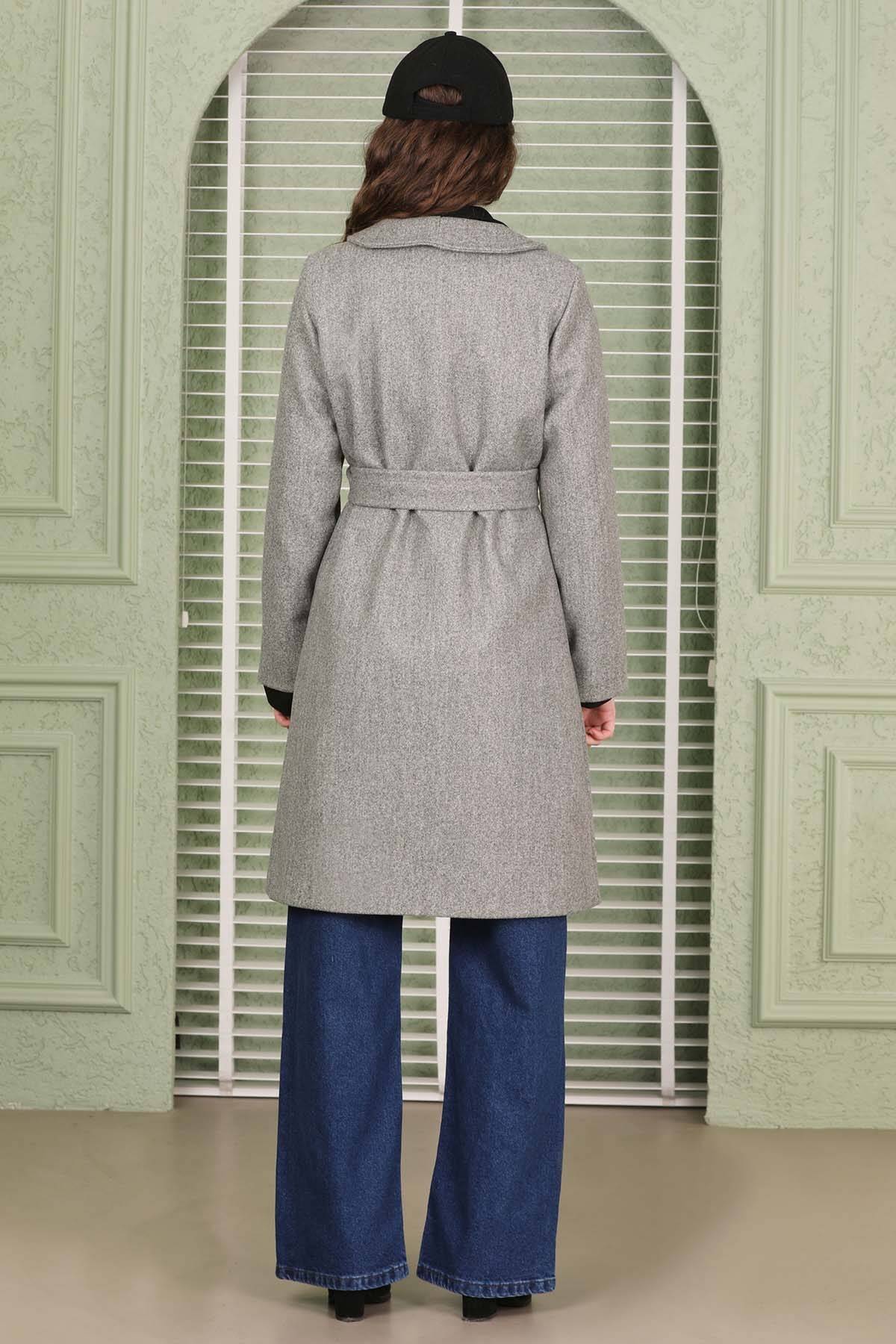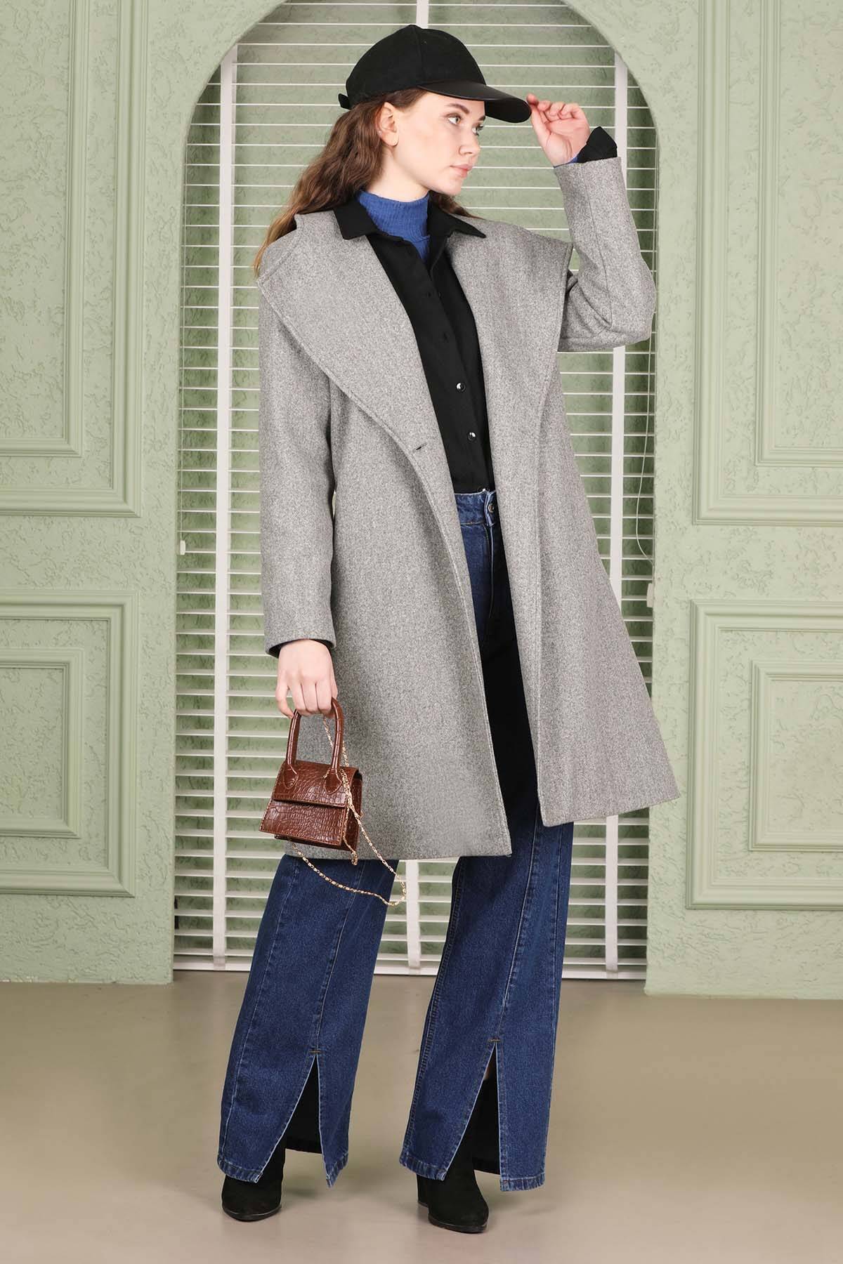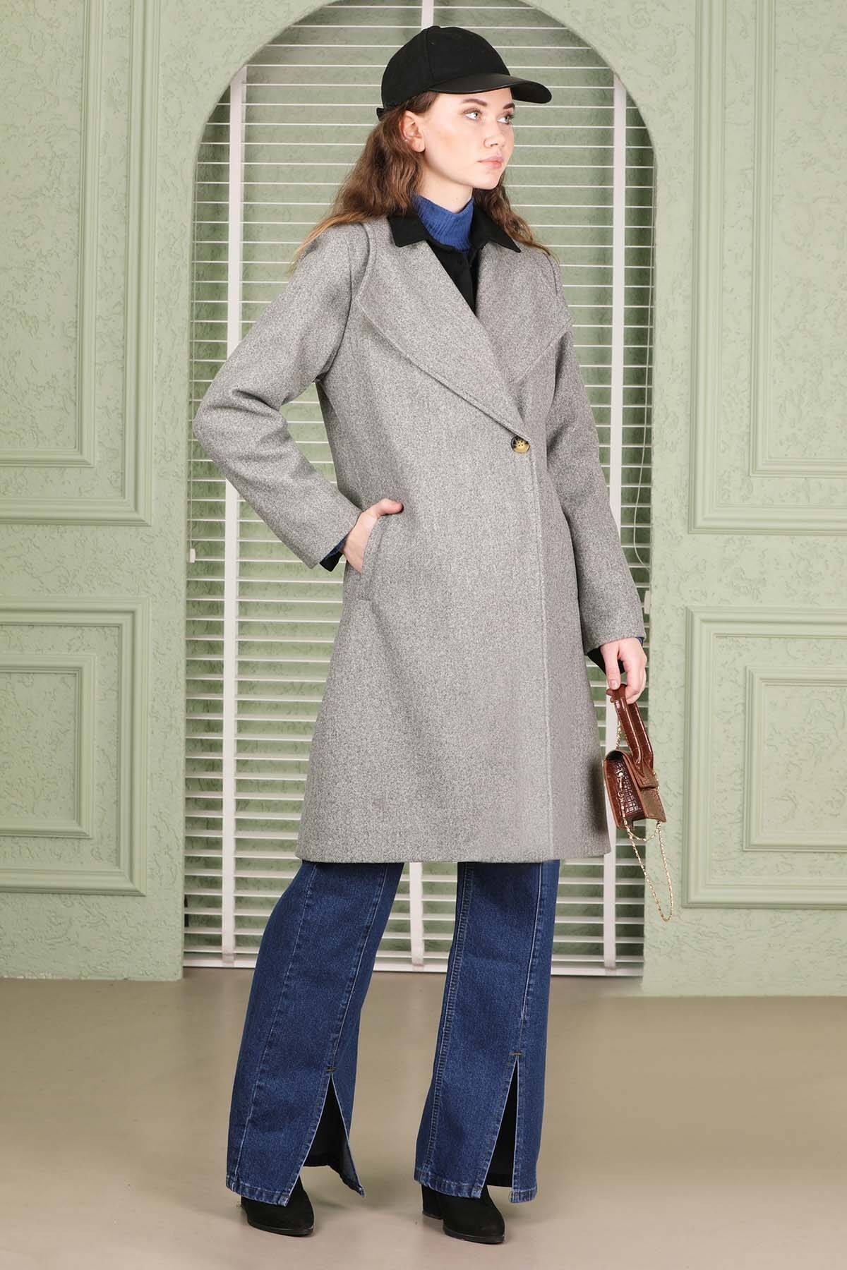Tek Düğmeli Kaşe Kaban Gri. Oval ingiliz geniş yaka olup tek düğmeli kruvze kapamadır.Trençkot belden kuşaklıdır ve cep detaylıdır. Ürün astarlıdır..