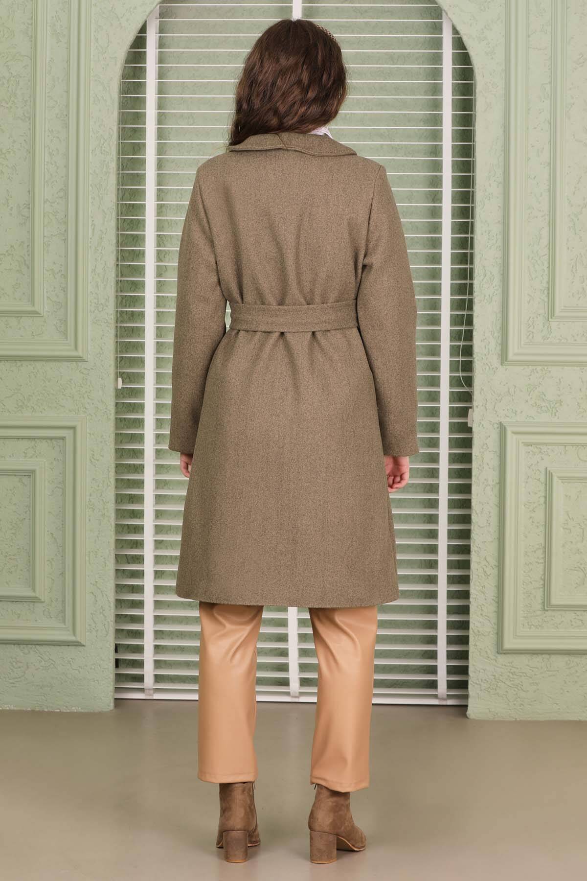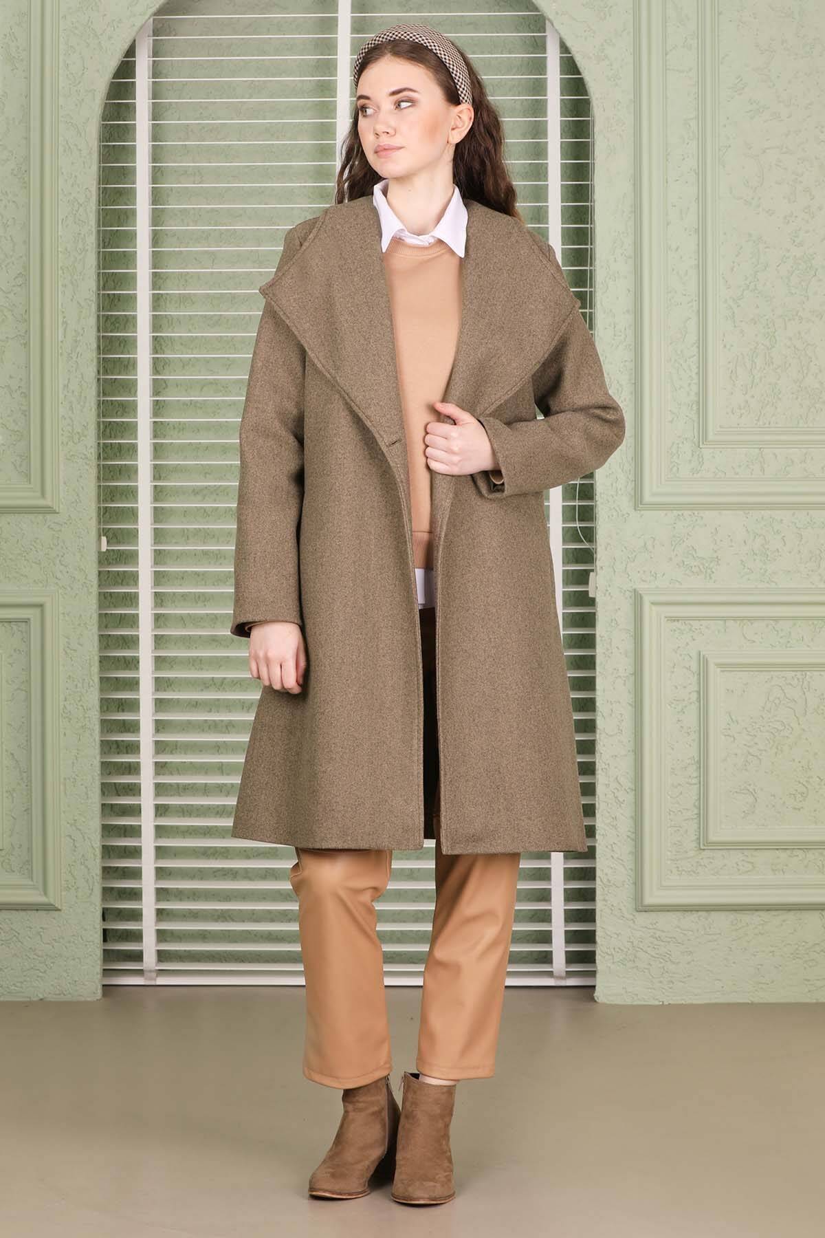 Tek Düğmeli Kaşe Kaban Toprak. Oval ingiliz geniş yaka olup tek düğmeli kruvze kapamadır.Trençkot belden kuşaklıdır ve cep detaylıdır. Ürün astarlıdır..