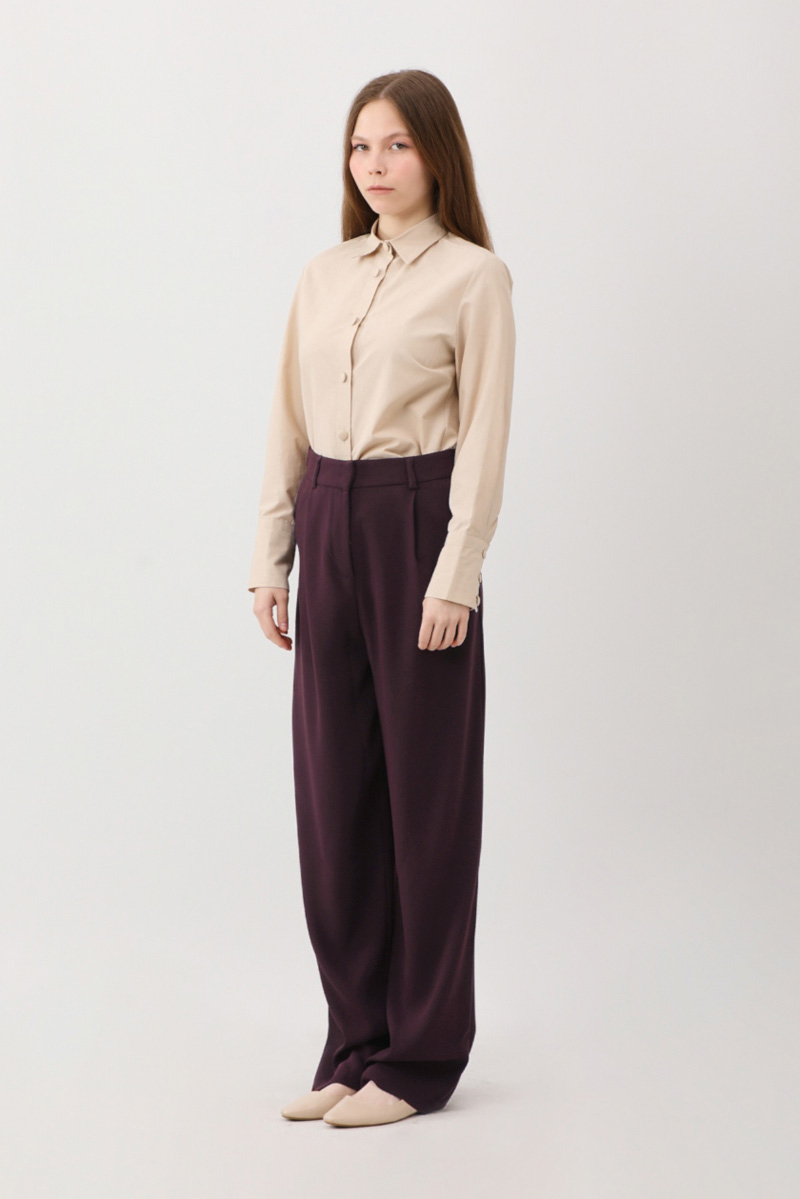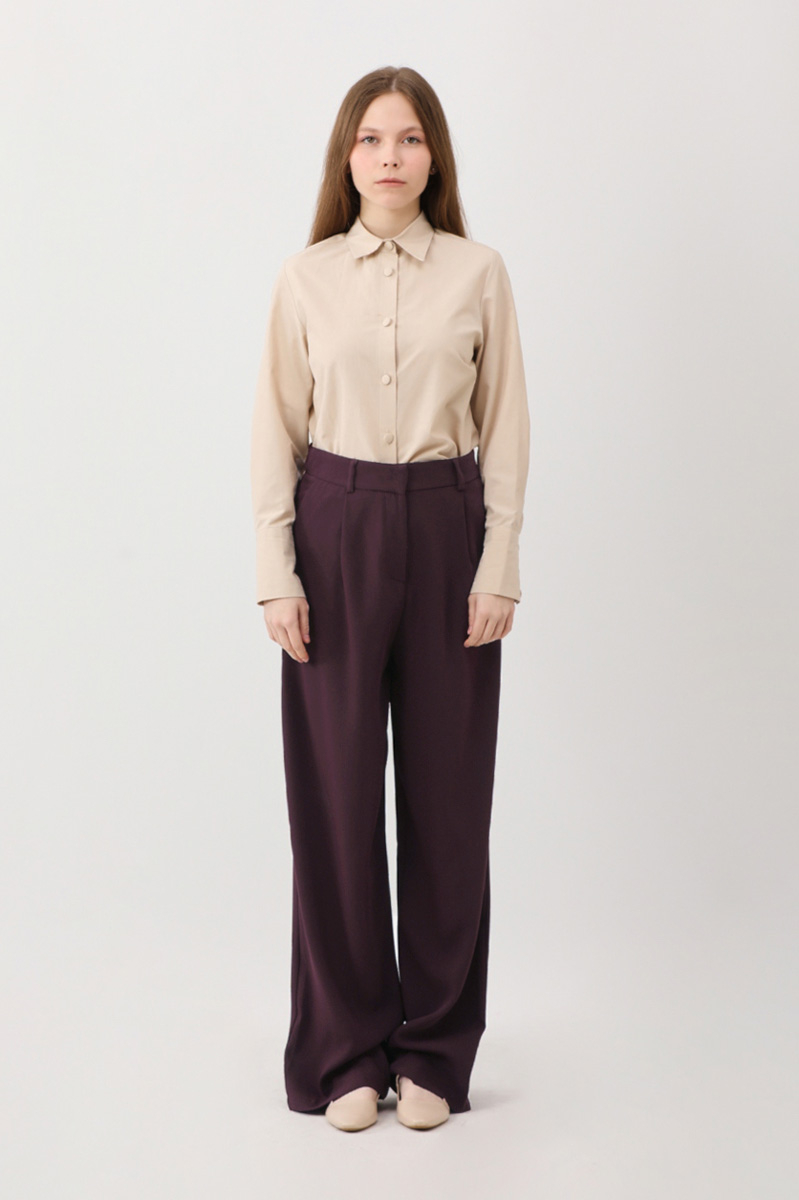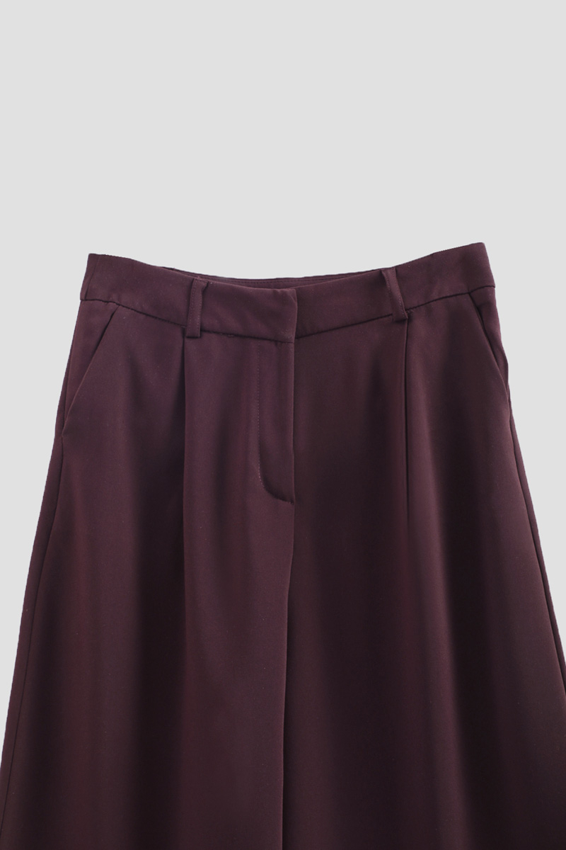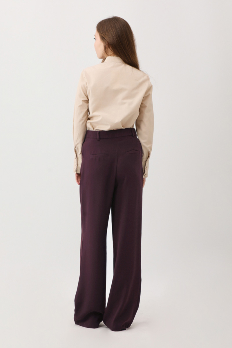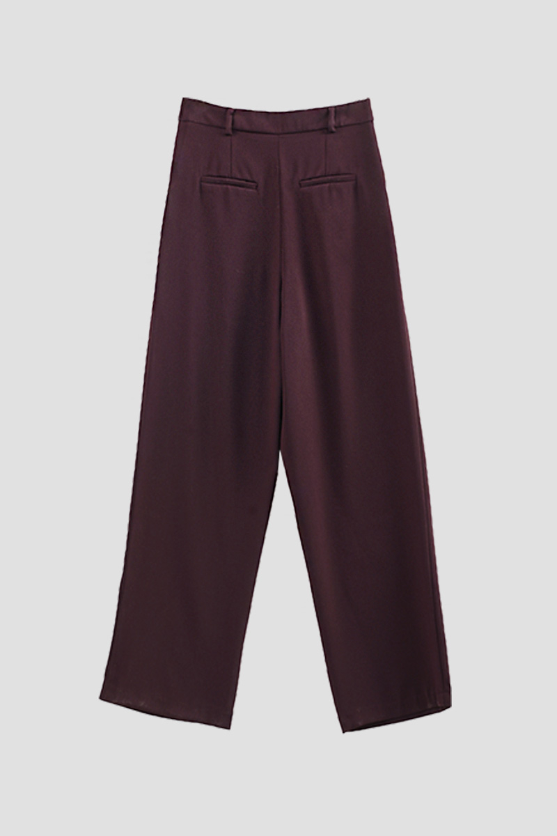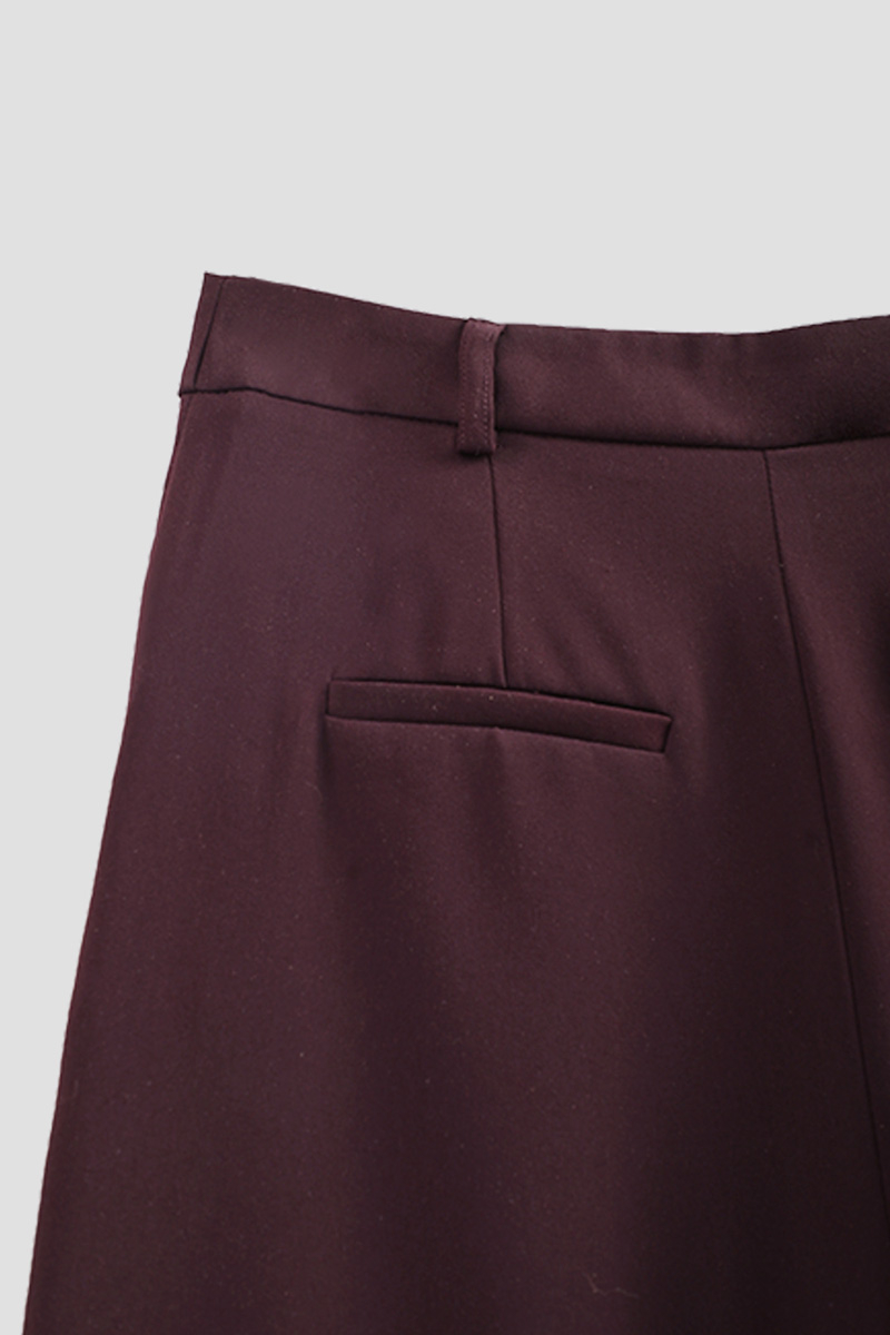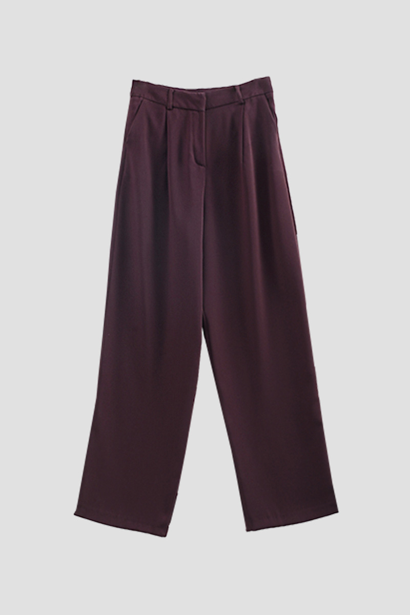 Tek Pileli Pantolon Mürdüm. Önden pilelidir, yandan ceplidir, bol kesimdir, fermuarlı ve düğmelidir, astarsızdır. Günlük kullanım için uygundur.