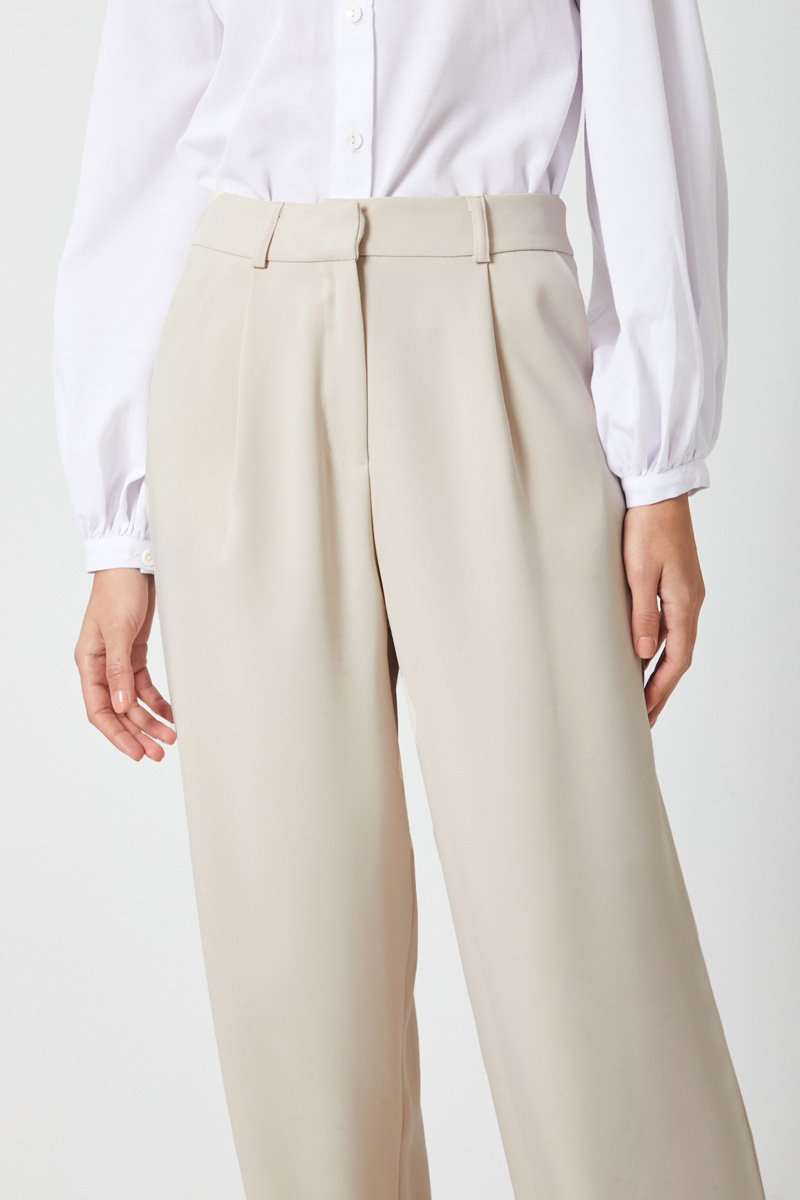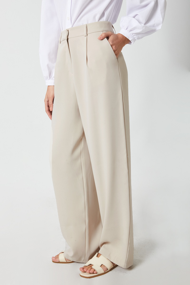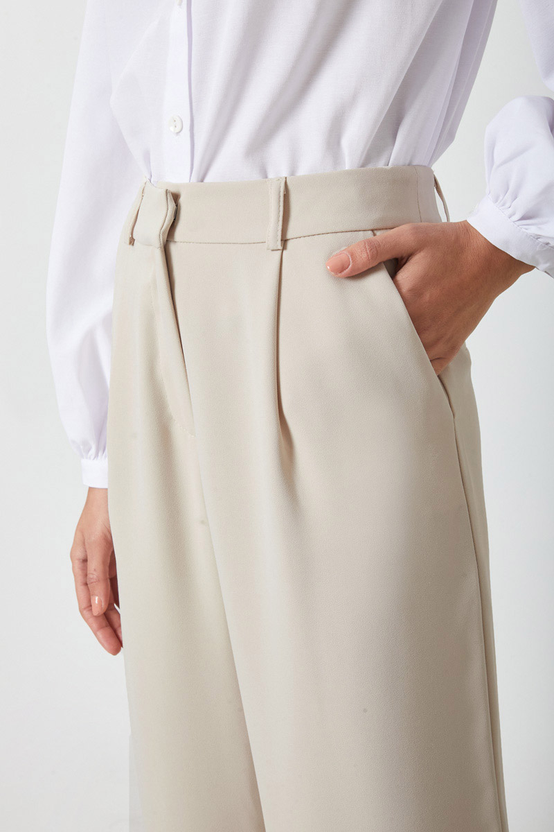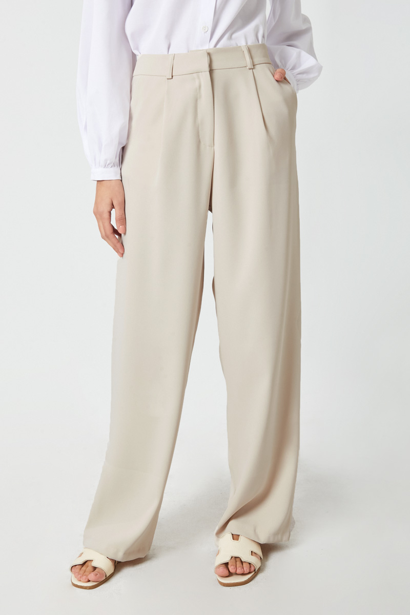 Tek Pileli Pantolon Taş. Önden pilelidir, yandan ceplidir, bol kesimdir, fermuarlı ve düğmelidir, astarsızdır. Günlük kullanım için uygundur.