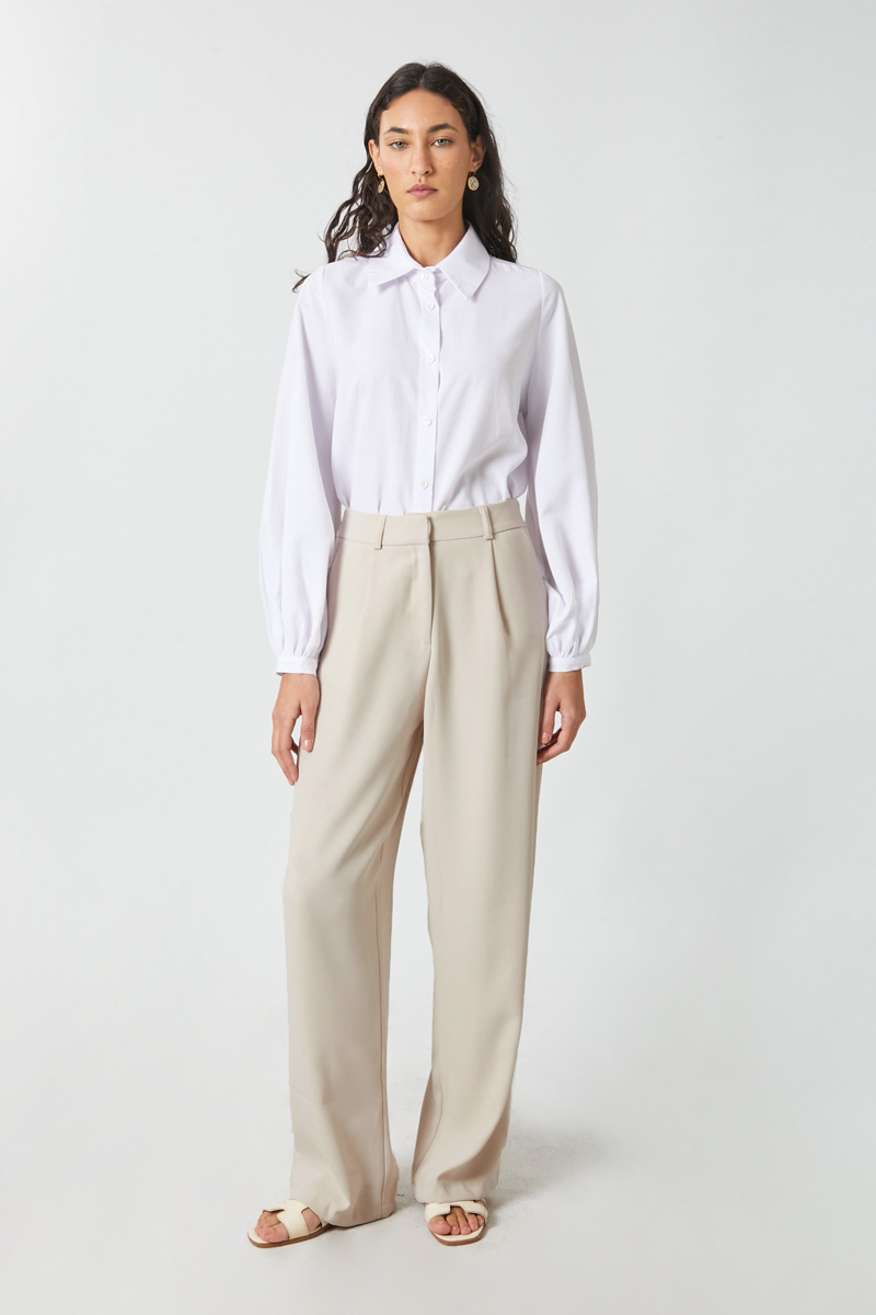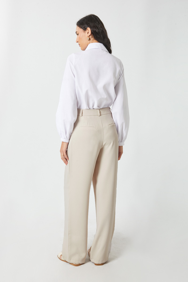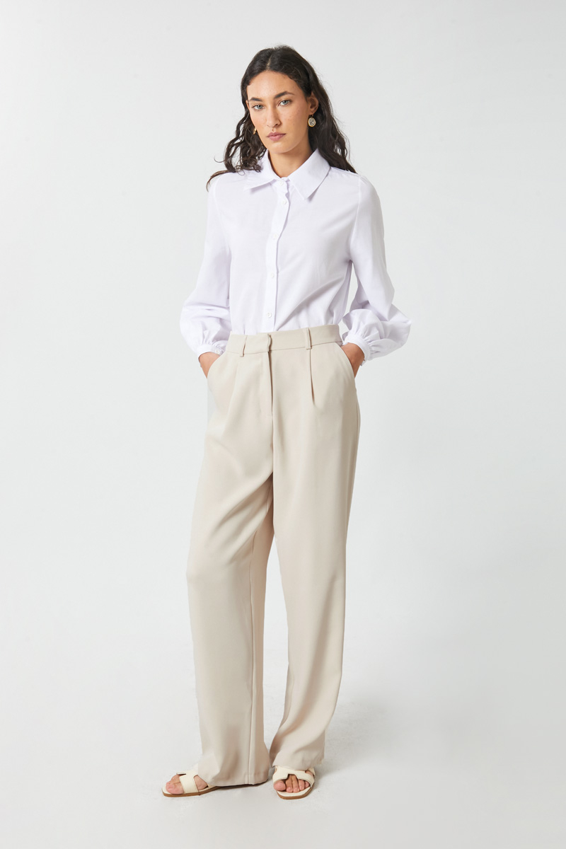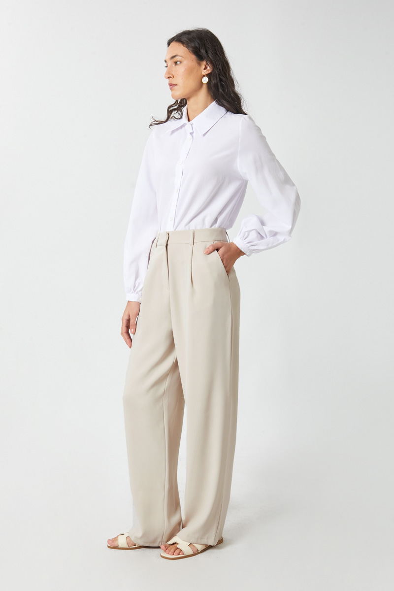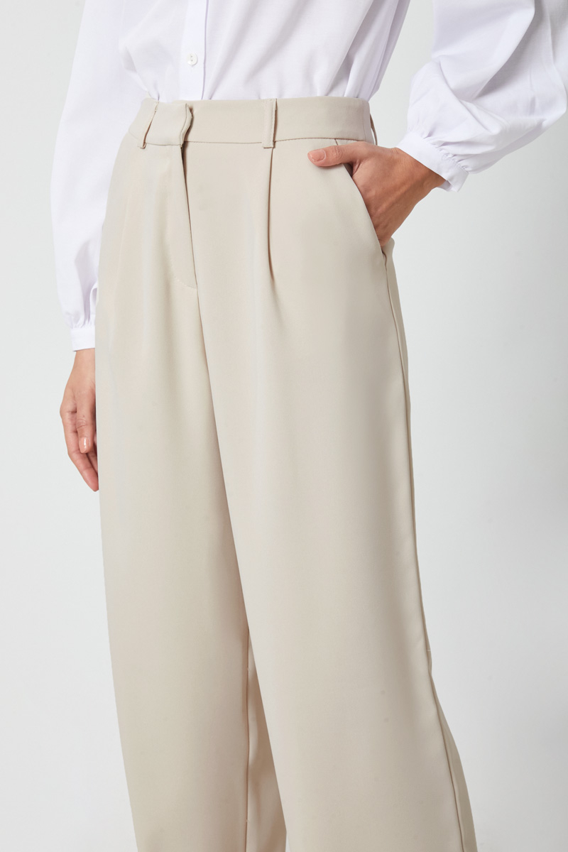 Tek Pileli Pantolon Taş. Önden pilelidir, yandan ceplidir, bol kesimdir, fermuarlı ve düğmelidir, astarsızdır. Günlük kullanım için uygundur.