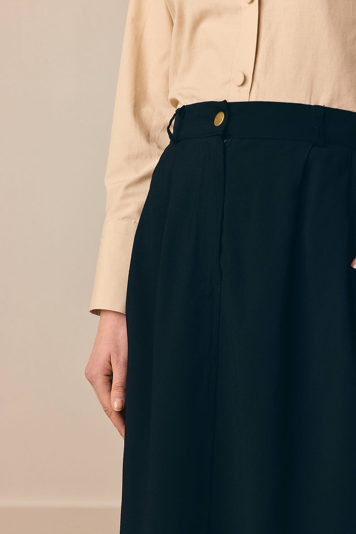 Zamansız tasarımı ve akıcı tensel dokusuyla öne çıkan Tensel Klasik Etek, sade şıklığı dengeli bir siluetle buluşturur. Ön yüzeyde yer alan pile detayları modele hareket kazandırırken, önden fermuar kapaması pratik bir kullanım sunar. Standart bel formu ve rahat yapısı sayesinde gün boyu konfor sağlar; hem günlük hem de daha düzenli kombinlerde kolayca tercih edilebilir.
