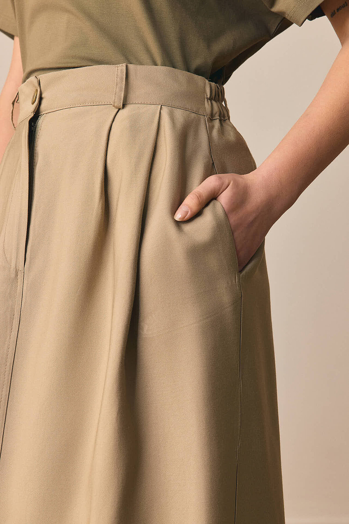Zamansız tasarımı ve akıcı tensel dokusuyla öne çıkan Tensel Klasik Etek, sade şıklığı dengeli bir siluetle buluşturur. Ön yüzeyde yer alan pile detayları modele hareket kazandırırken, önden fermuar kapaması pratik bir kullanım sunar. Standart bel formu ve rahat yapısı sayesinde gün boyu konfor sağlar; hem günlük hem de daha düzenli kombinlerde kolayca tercih edilebilir.