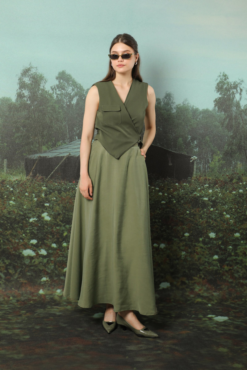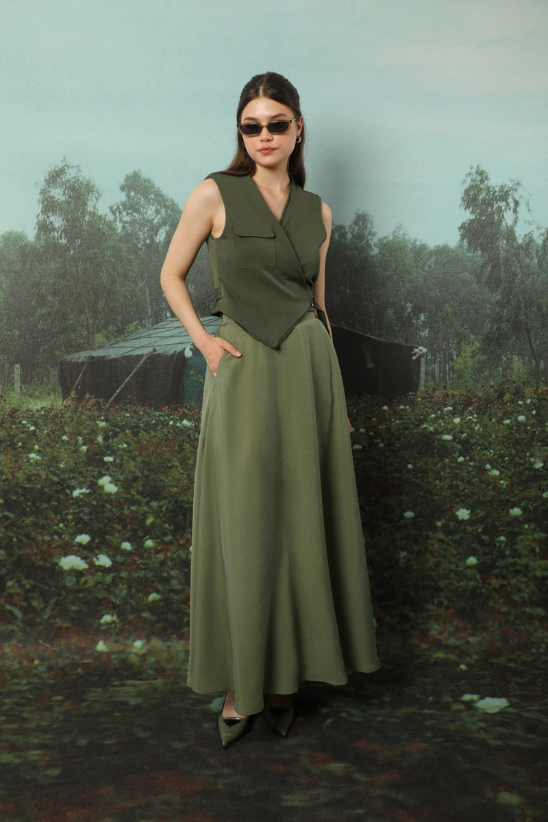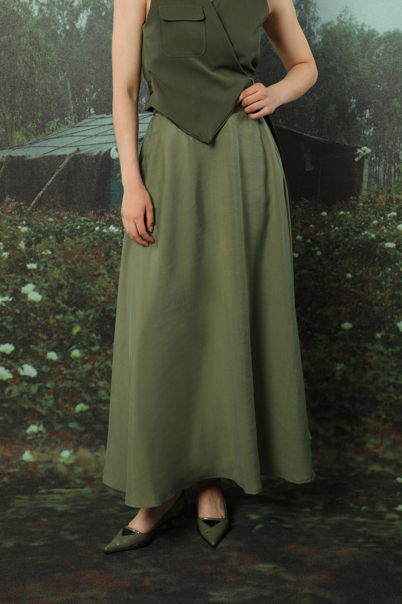 Tensel Kloş Etek Haki