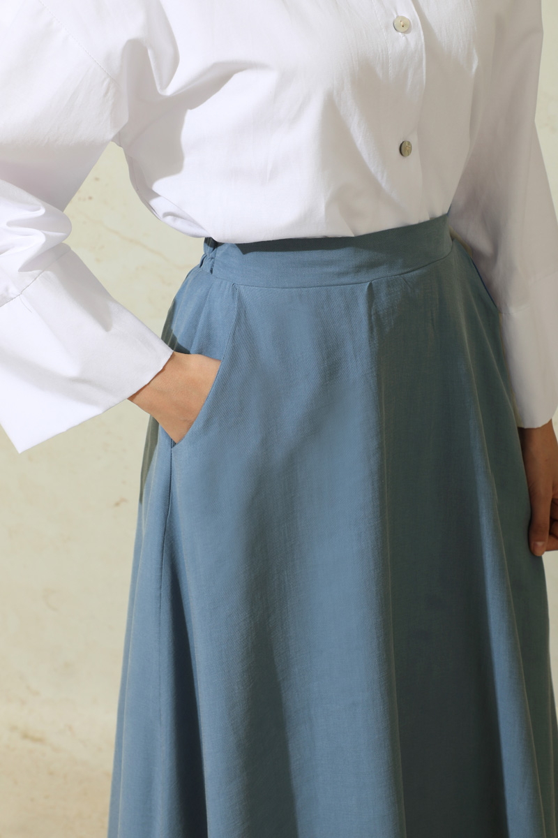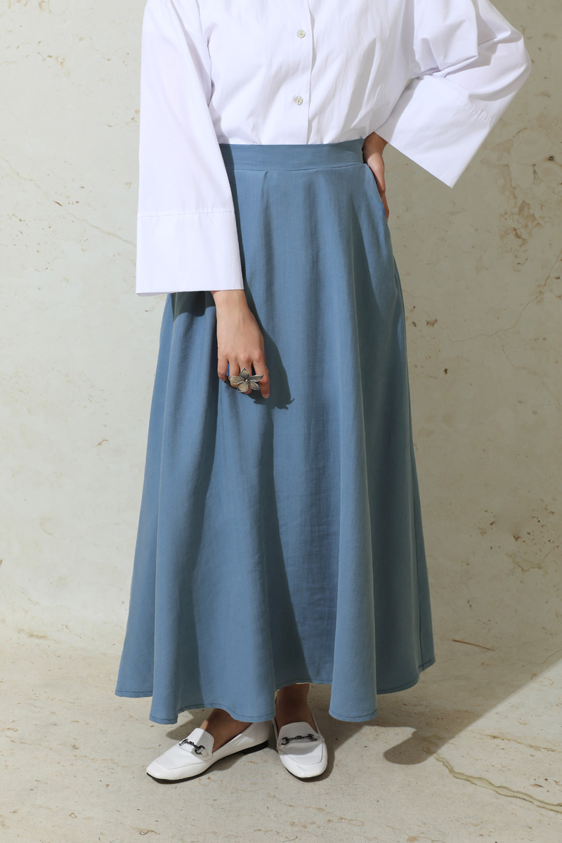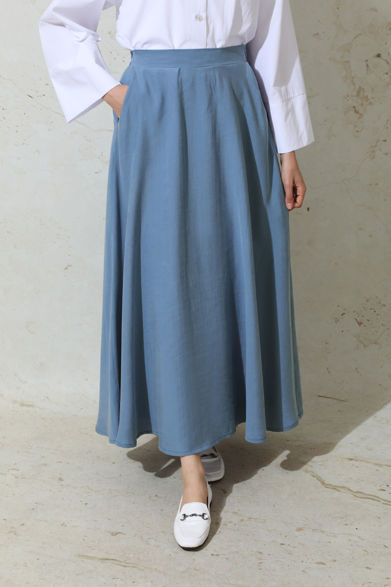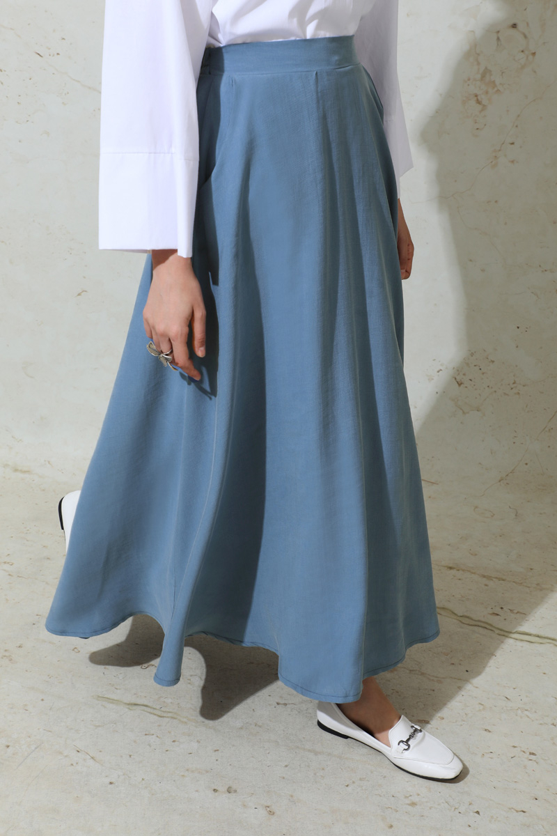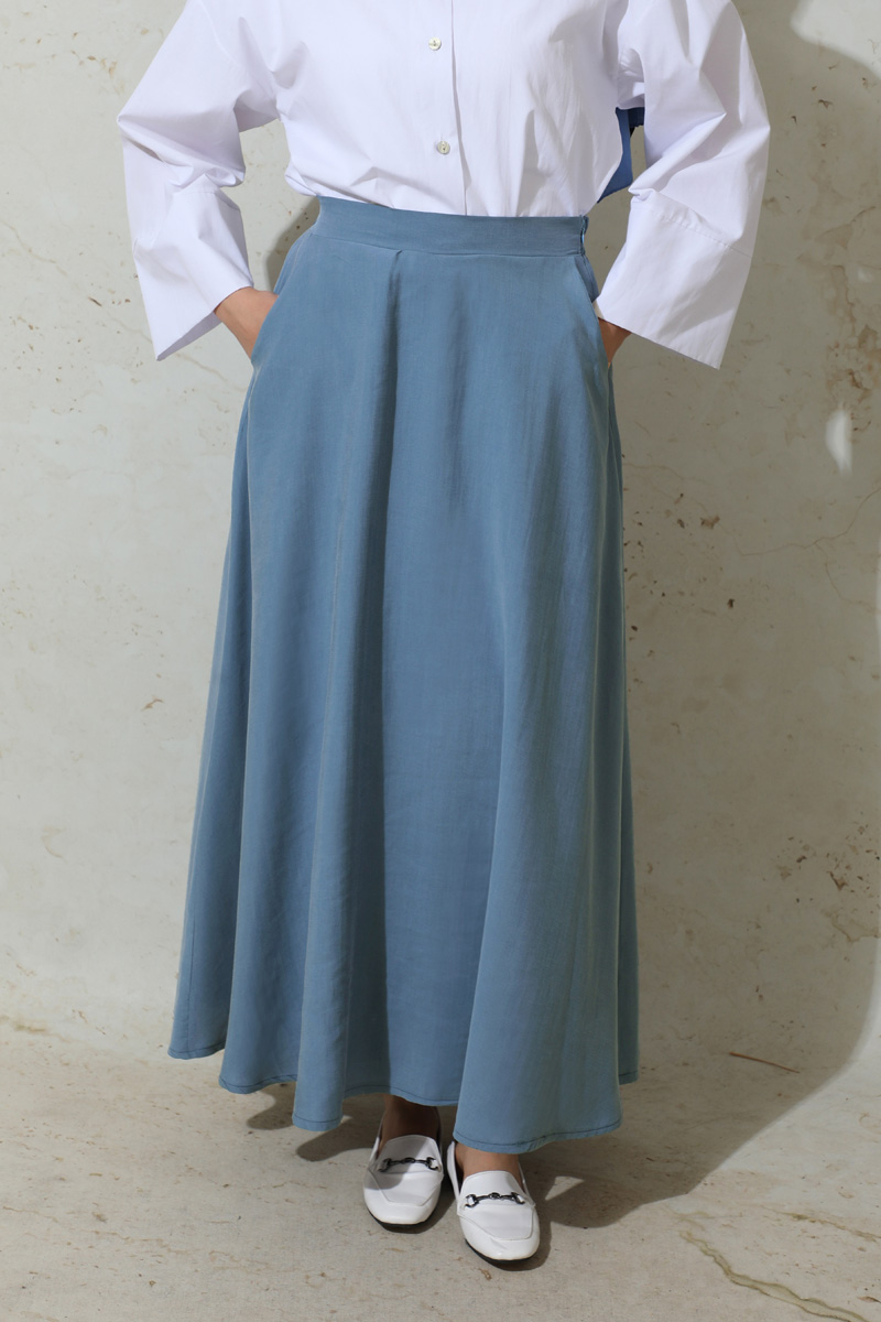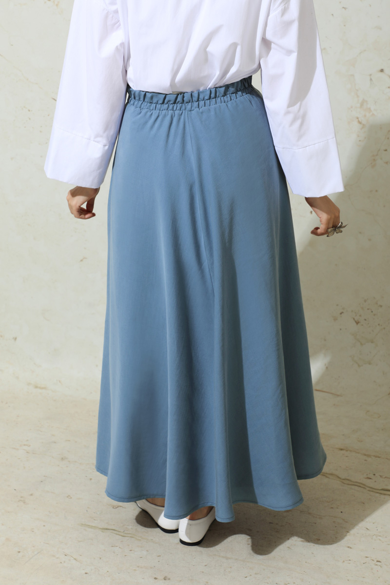 Tensel Kloş Etek İndigo. Tensel kumaştan imal edilmiştir.
