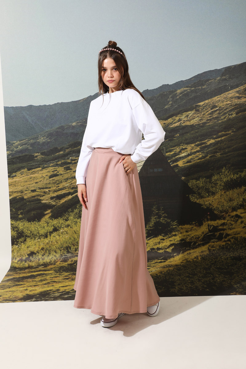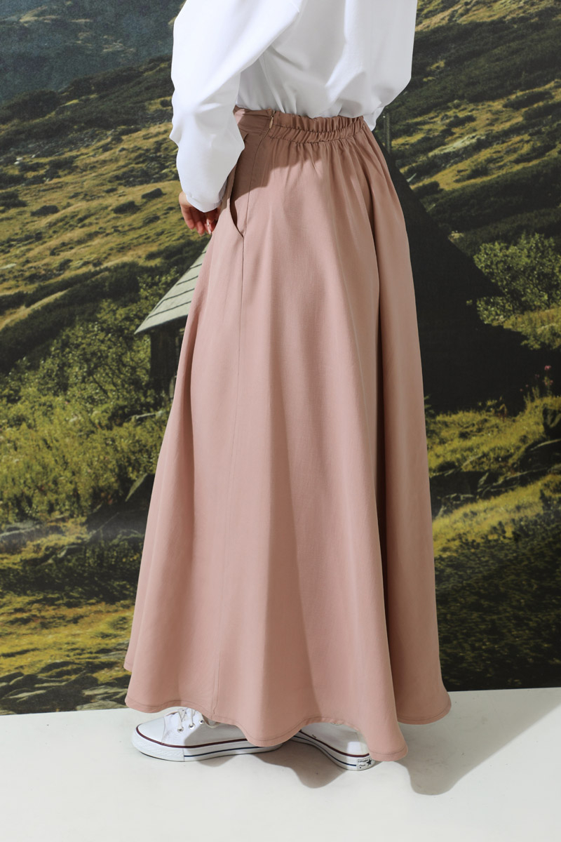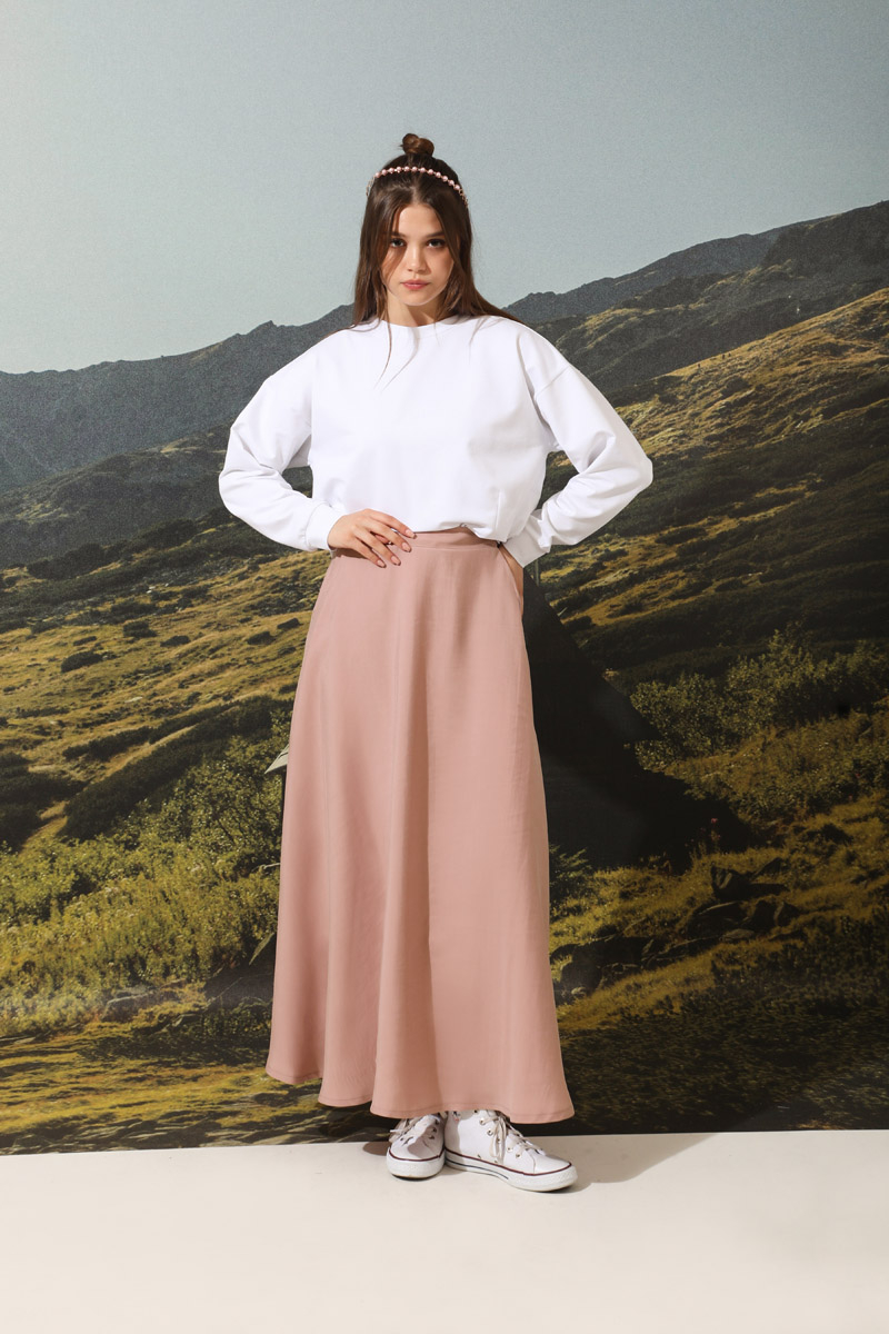 Tensel Kloş Etek Pembesi. Tensel kumaştan imal edilmiştir.