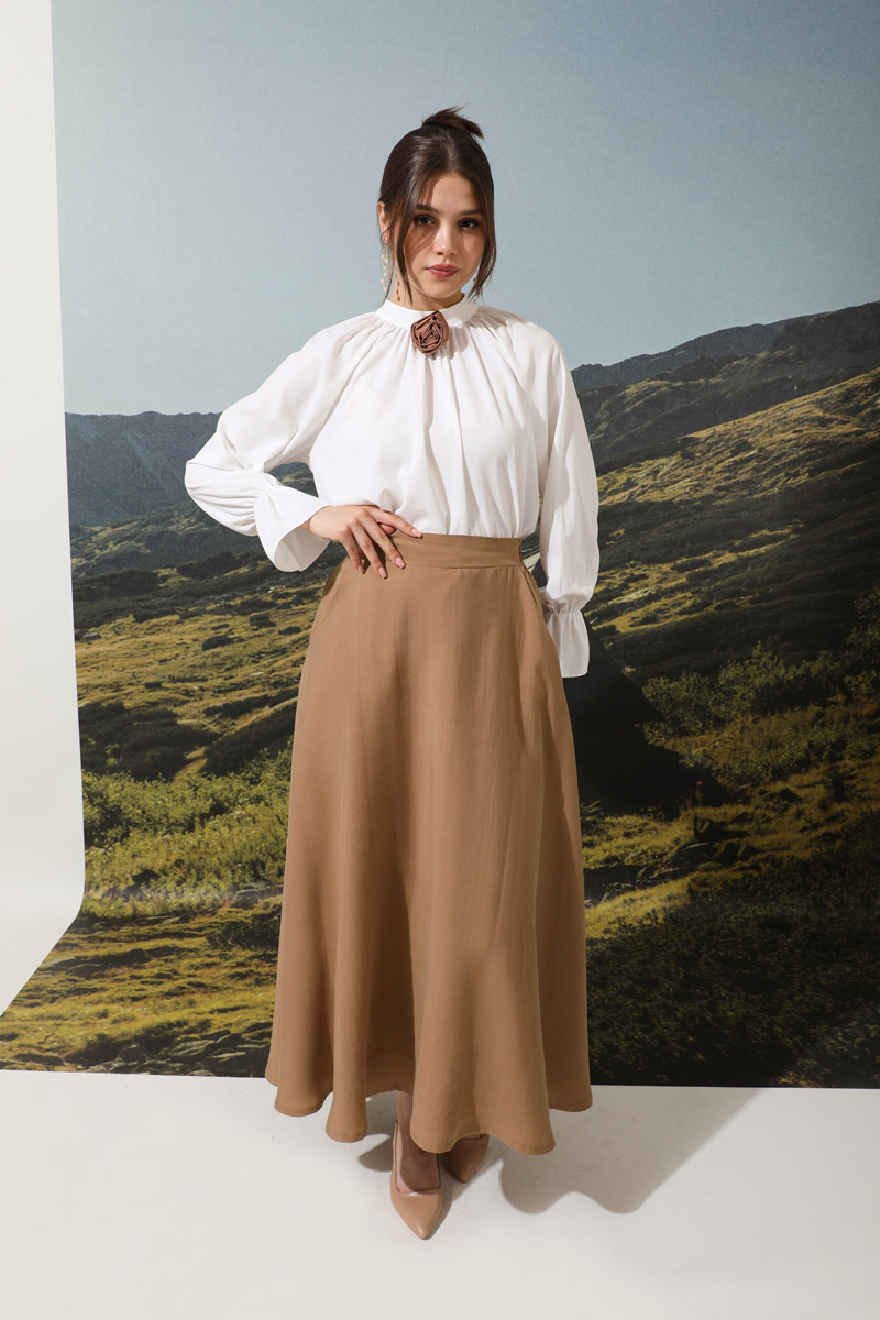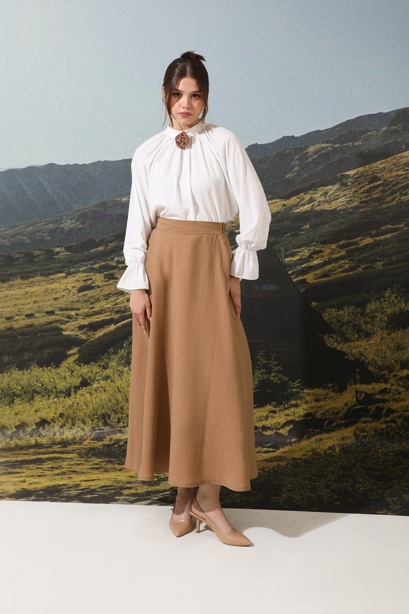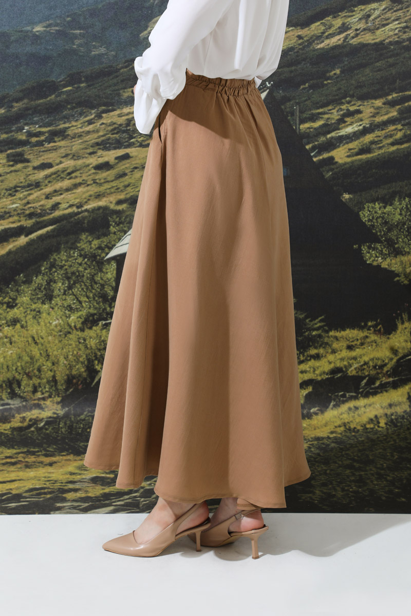 Tensel Kloş Etek Somon. Tensel kumaştan imal edilmiştir.