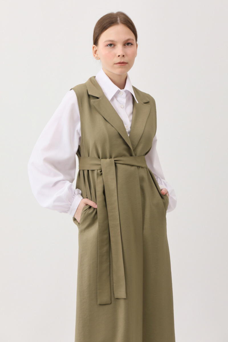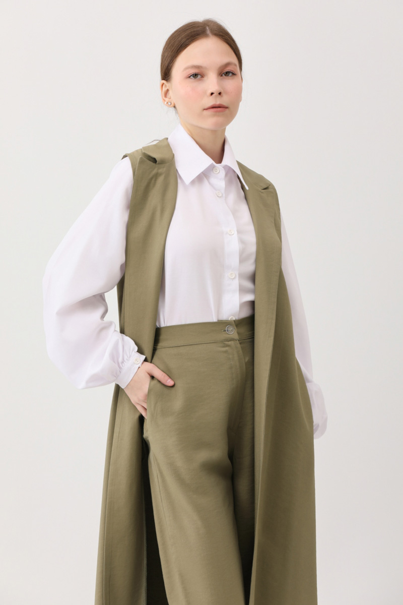 Tensel Yelekli Pantolon Takım Haki. Kruvaze yakadır, sıfır kolludur, yandan ceplidir. Pantolon, düğmeli ve fermuarlıdır, arka beli lastiklidir, yandan ceplidir. Günlük kullanım ve özel günlerinizde tercih edebilirsiniz.